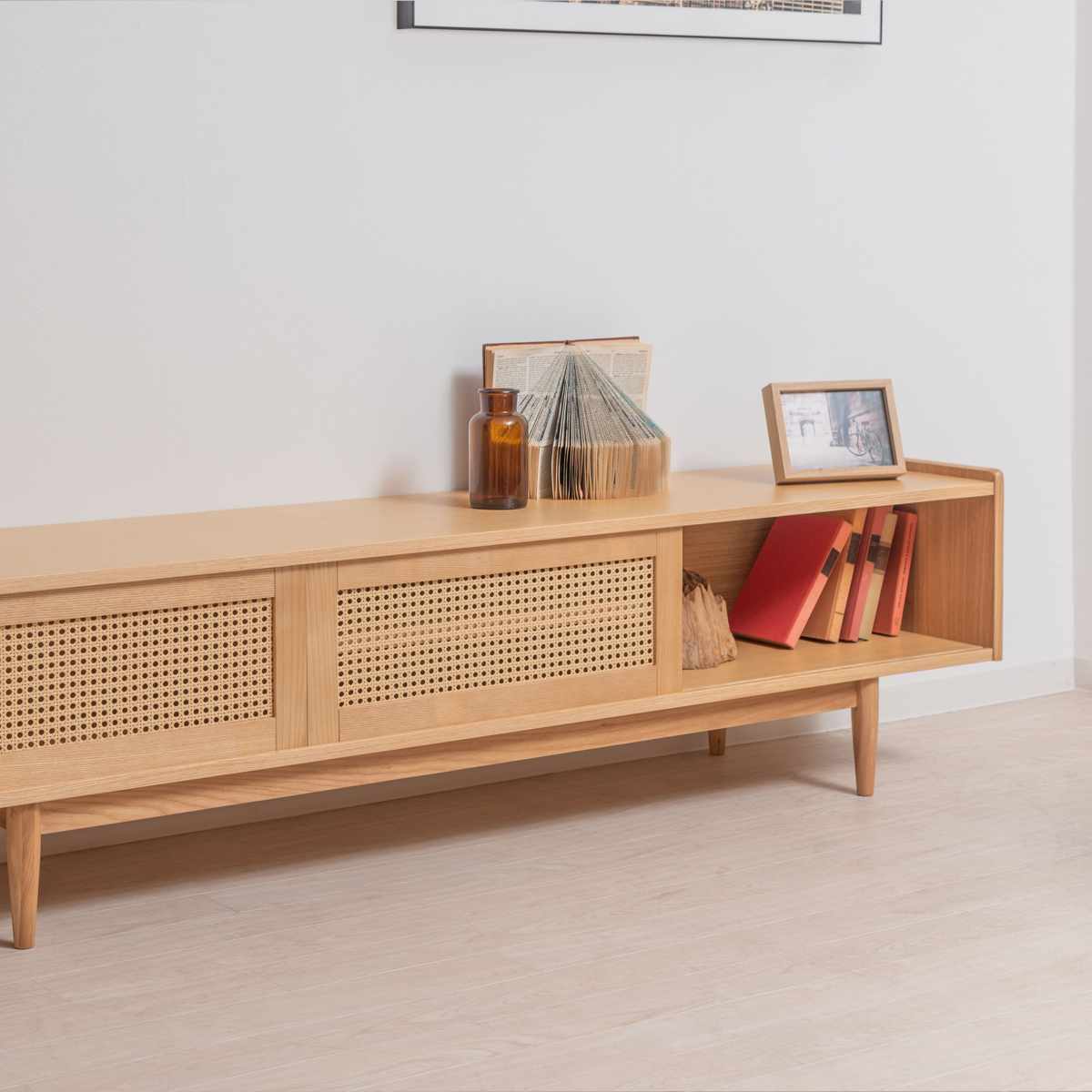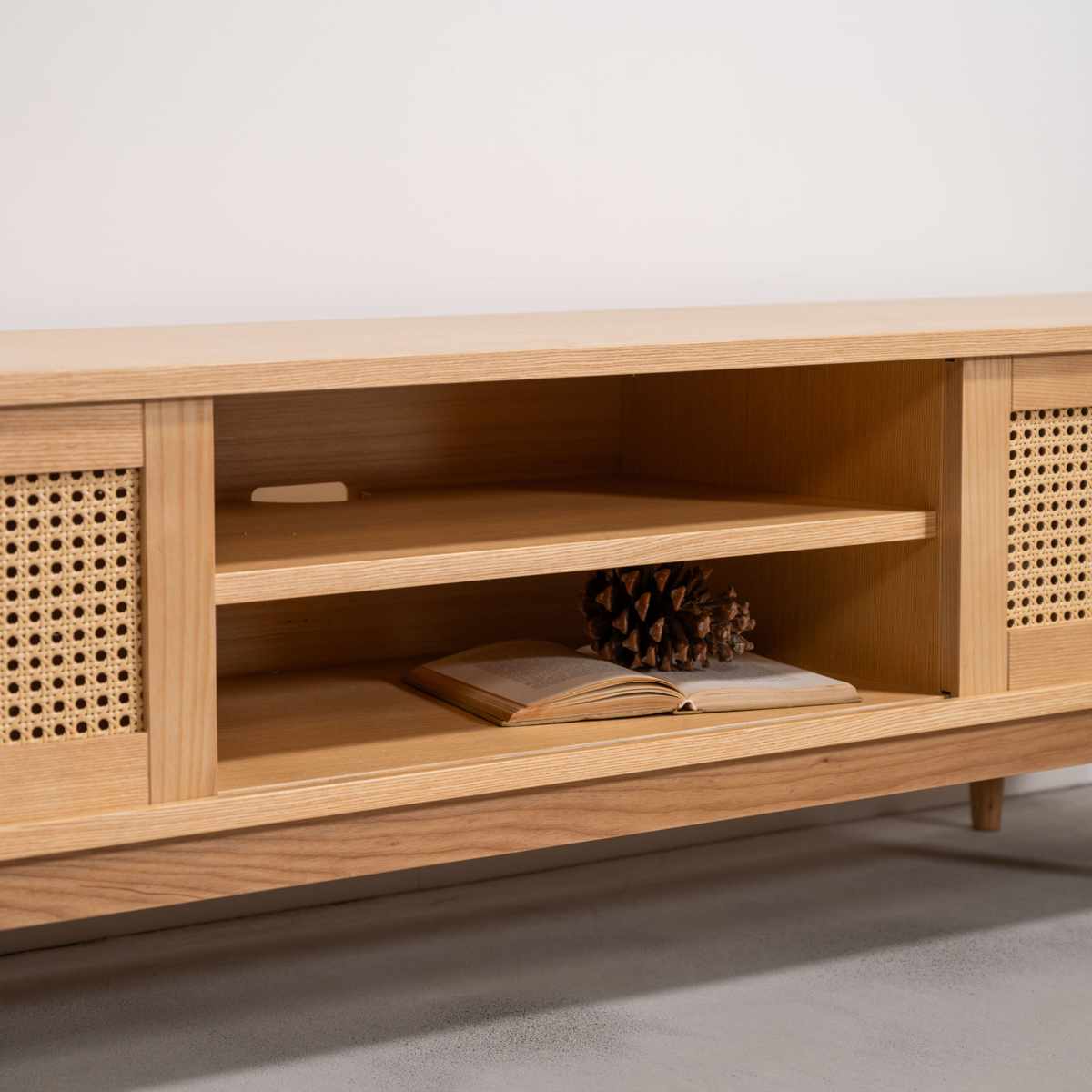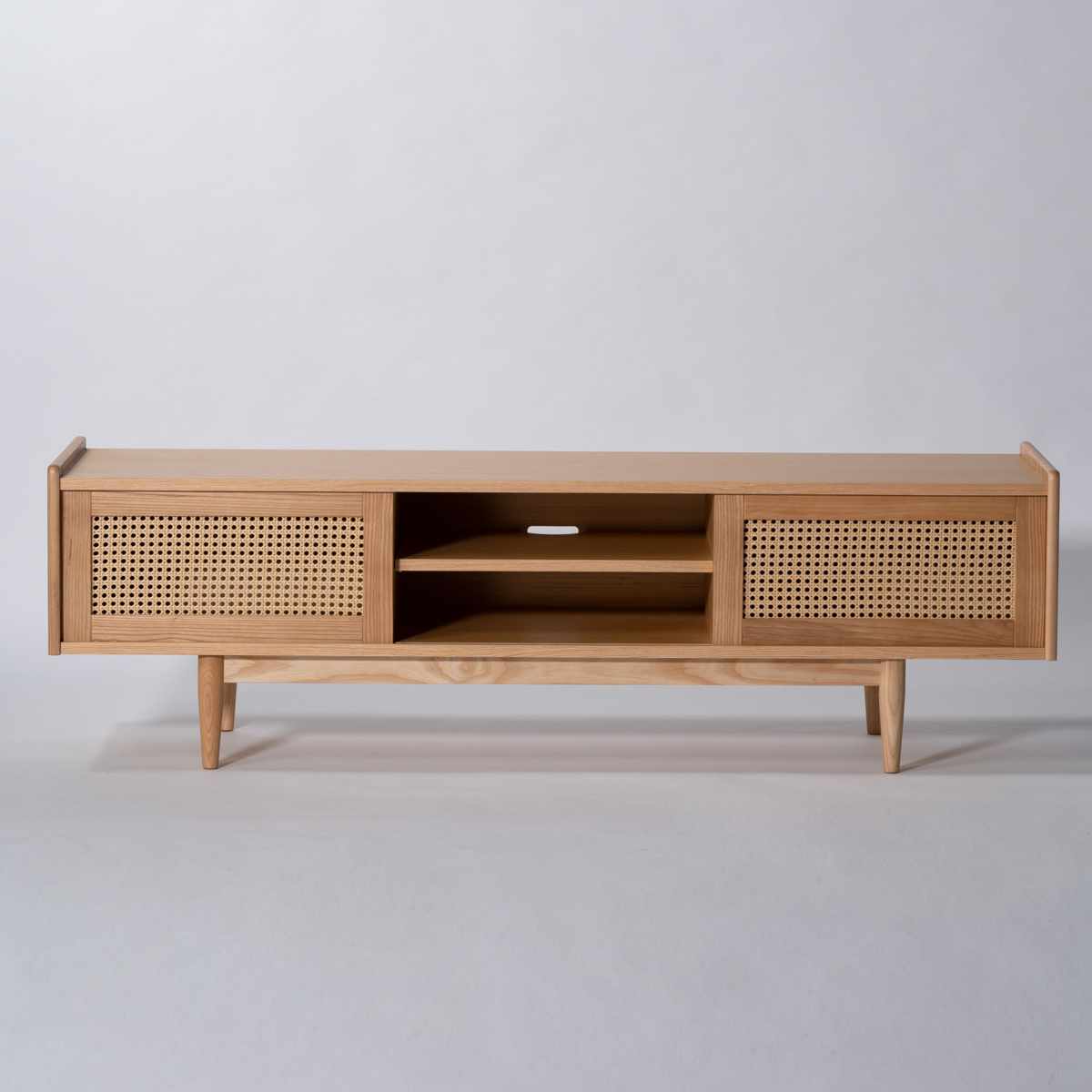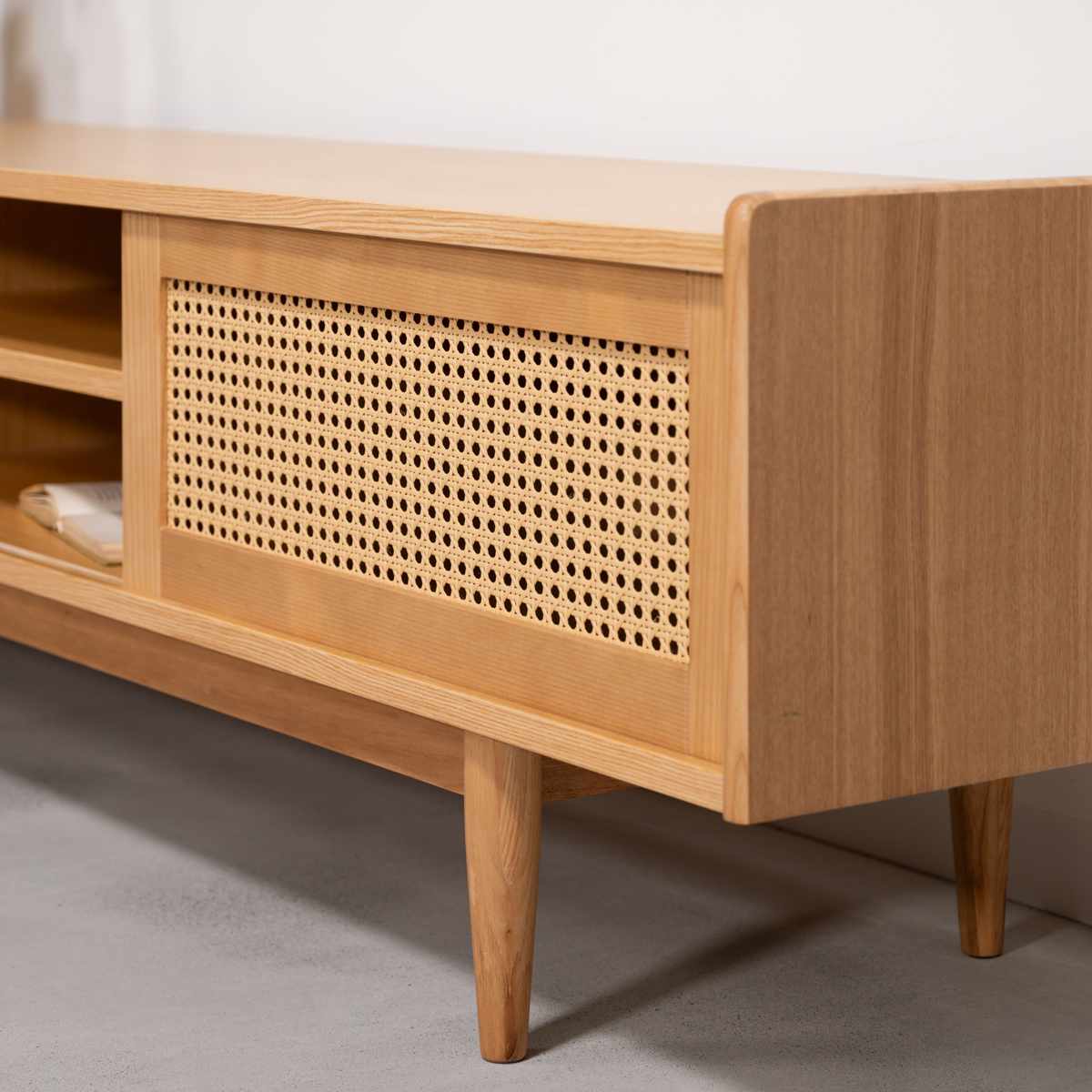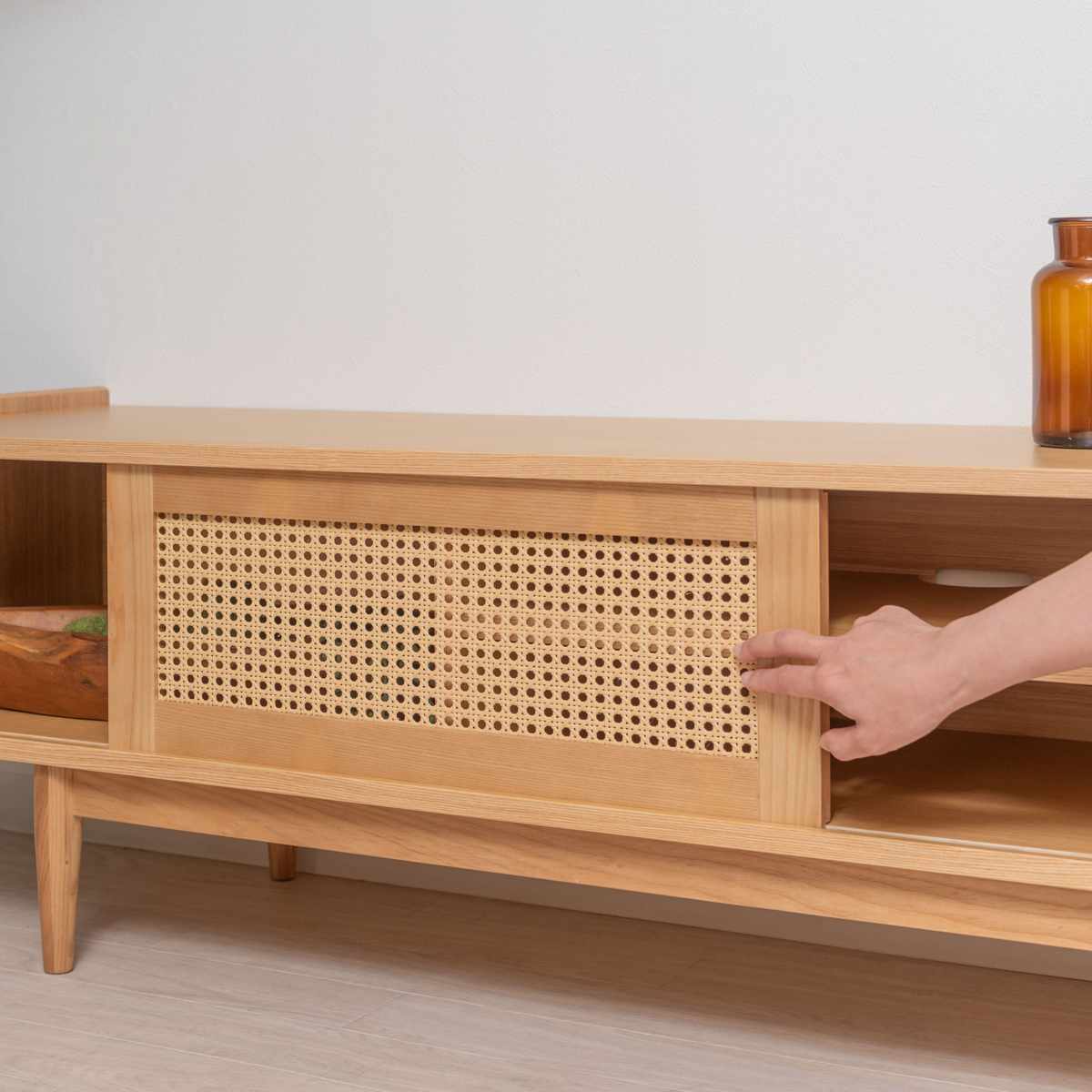 ナチュラルに暮らしになじむラタン調ローボード 幅150cm