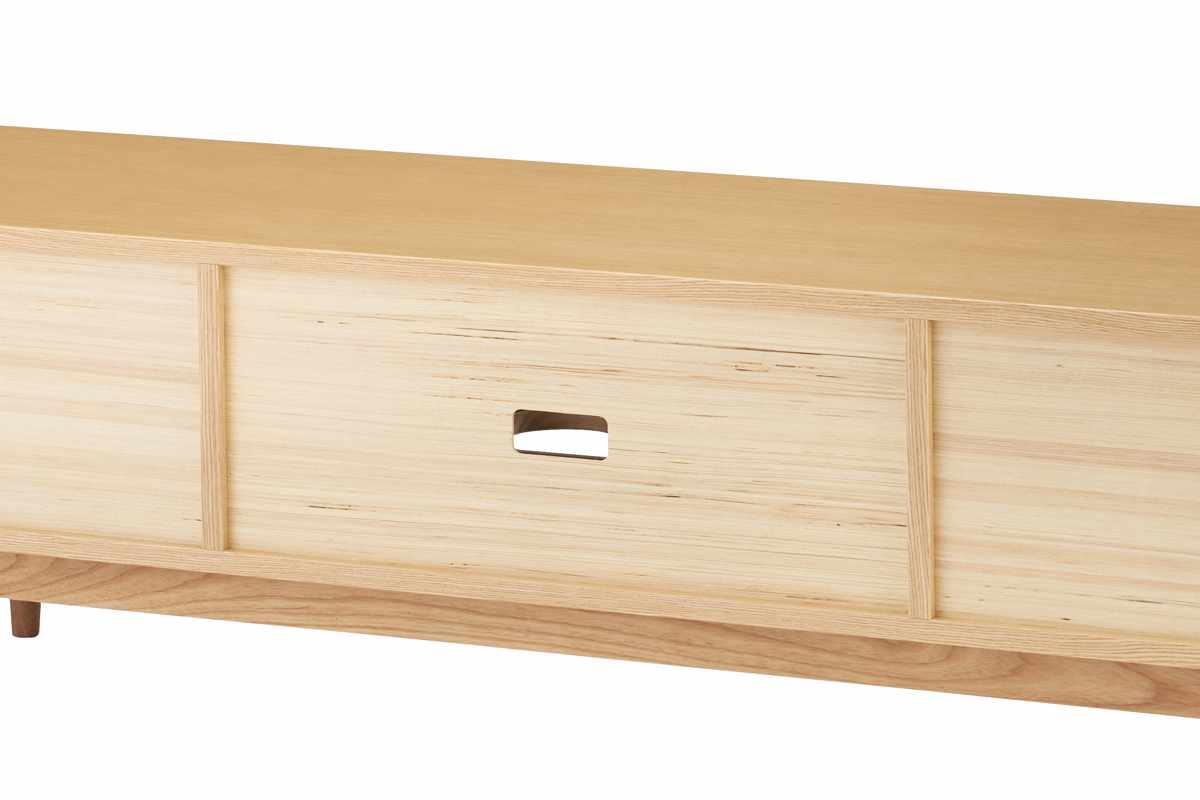 天板はアッシュ材の繊細で美しい木目が全面に活かされています。耐荷重は約40kgまであり、大型のテレビにも対応可能です。