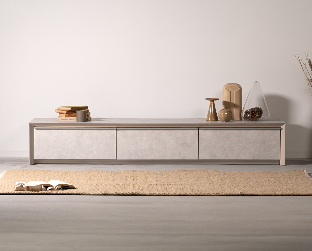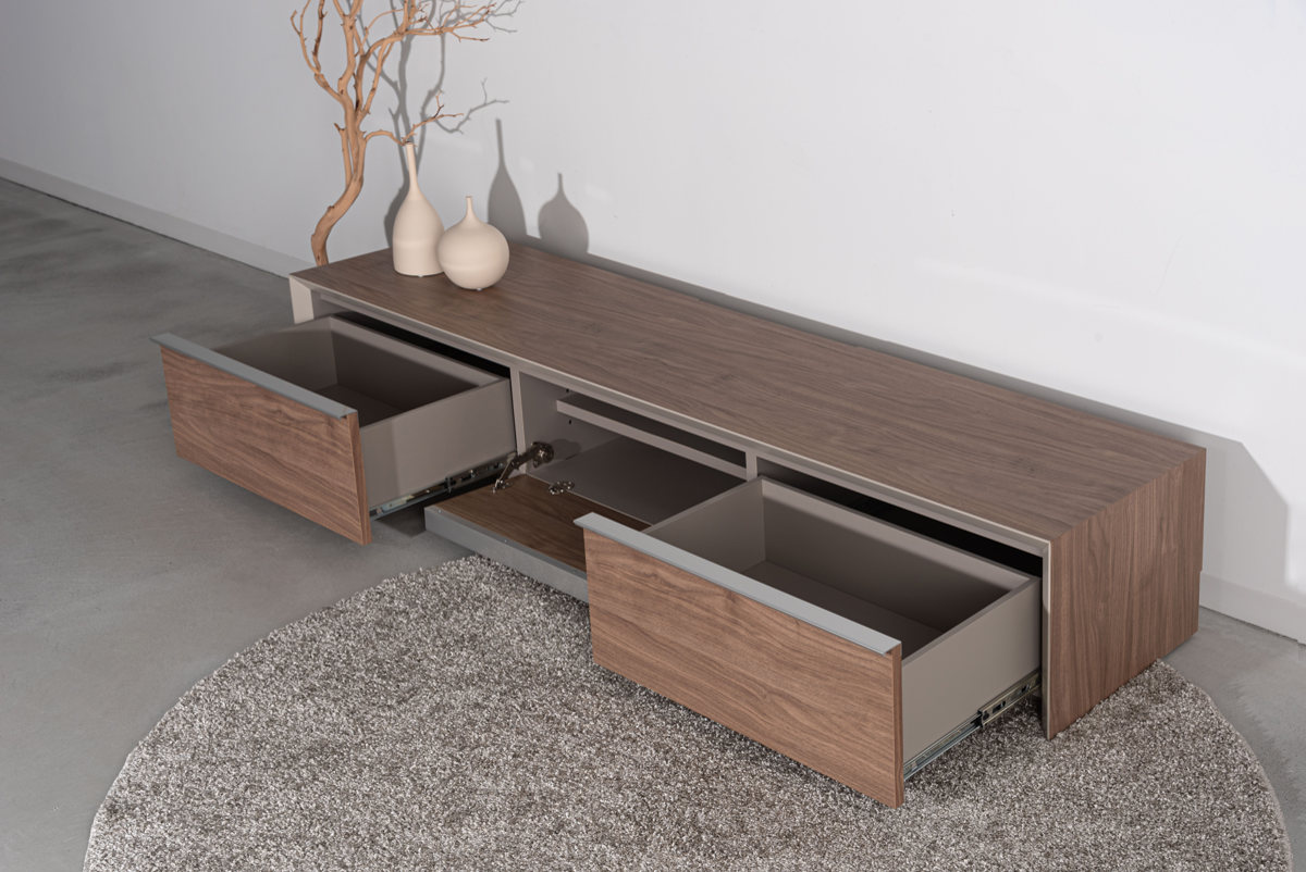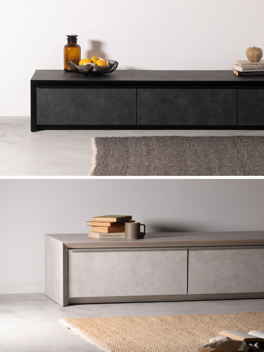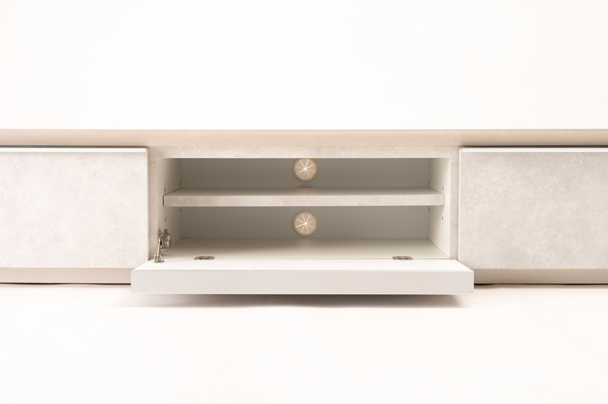 無駄のない洗練されたデザインのローボードです。重心を低く設計することで重厚感が生まれ、お部屋に置くだけで空間をホテルライクな印象に仕上げます。