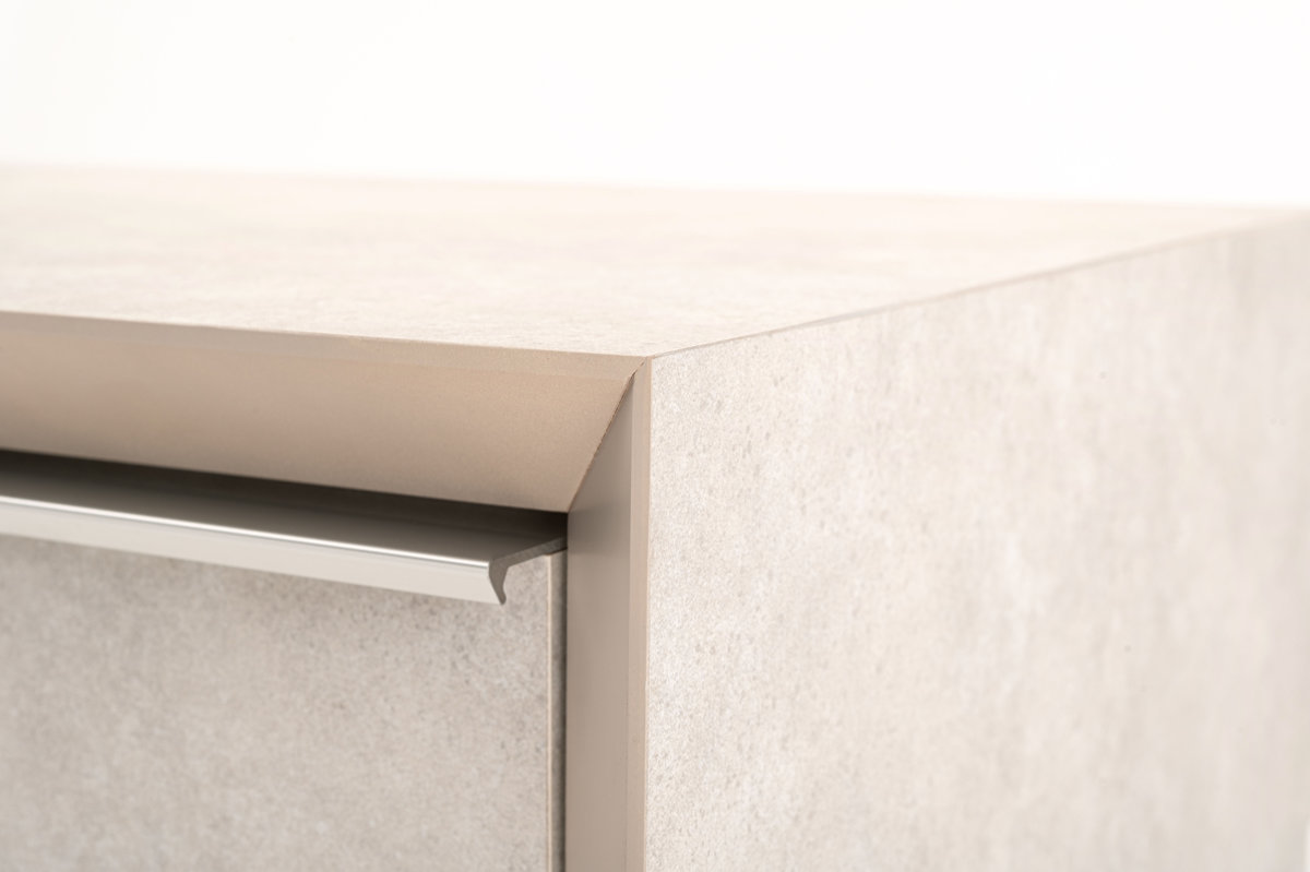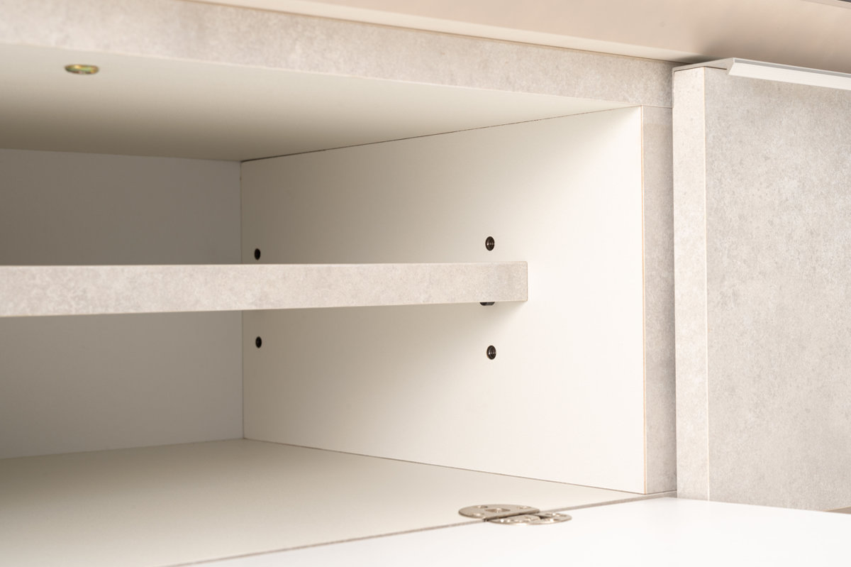 都会的でアーバンモダンな空間に仕上げてくれるライトグレー。白に近いさりげない淡いグレーは、無機質な美しさを表現します。シルバーカラーの取っ手が清潔な印象。