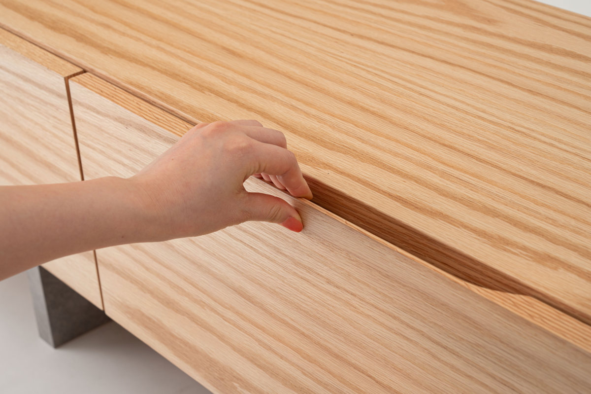 あえて取っ手は付けず、木目を最大限目立たせたデザイン