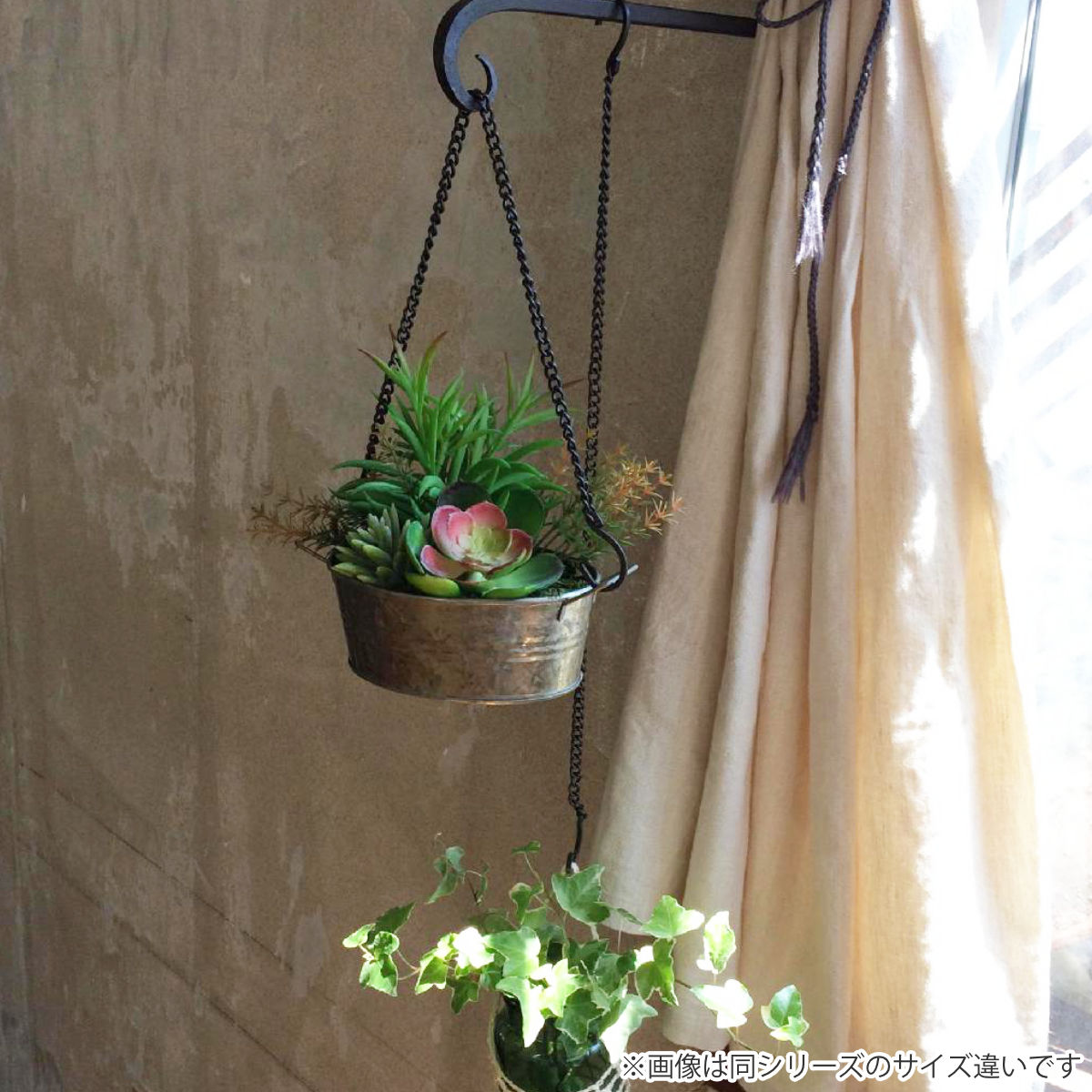 グリーンやドライフラワーを吊るして「見せる収納」としても活躍します。吊るすことでリビングやキッチンの空間を有効活用できます。