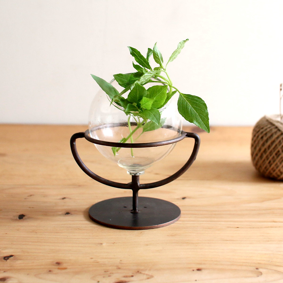 実験器具のようなユニークなデザインが特徴的な、アイアン&ガラスフラワーベースシリーズです。玄関やリビング、デスク周りに置くだけで、毎日の暮らしをちょっと特別に。シリーズで揃えると統一感のある空間になります。