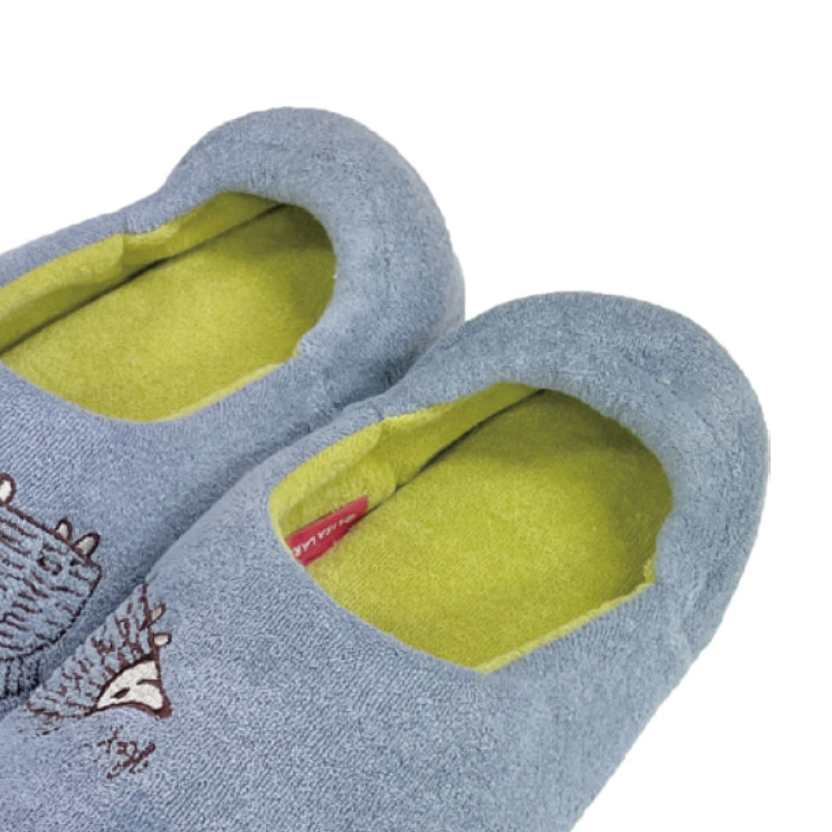 「Hej こんにちは」と挨拶しているはりねずみのデザインです。色の対比がオシャレな中敷きもポイントです。置いてかわいく、使って楽しいスリッパです。