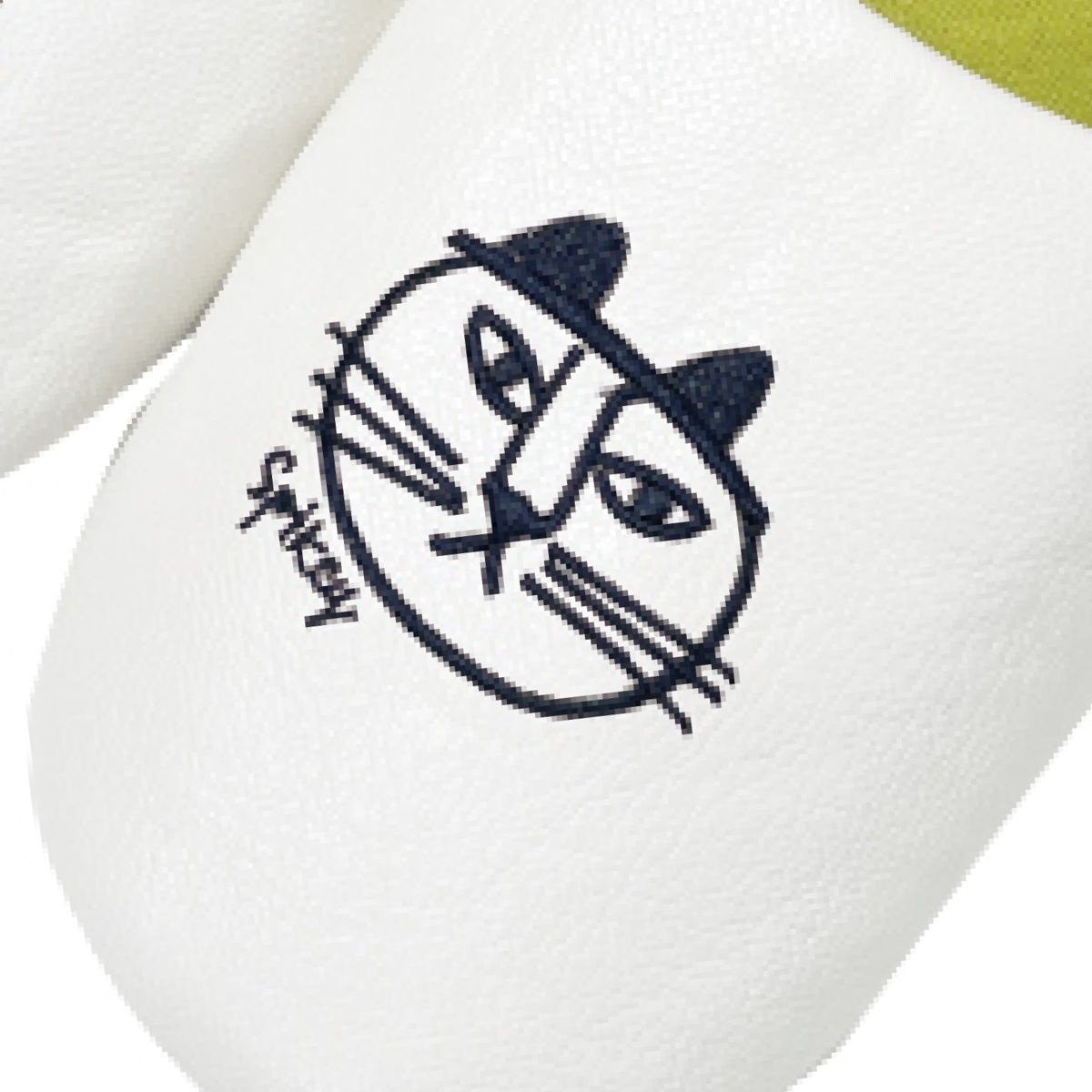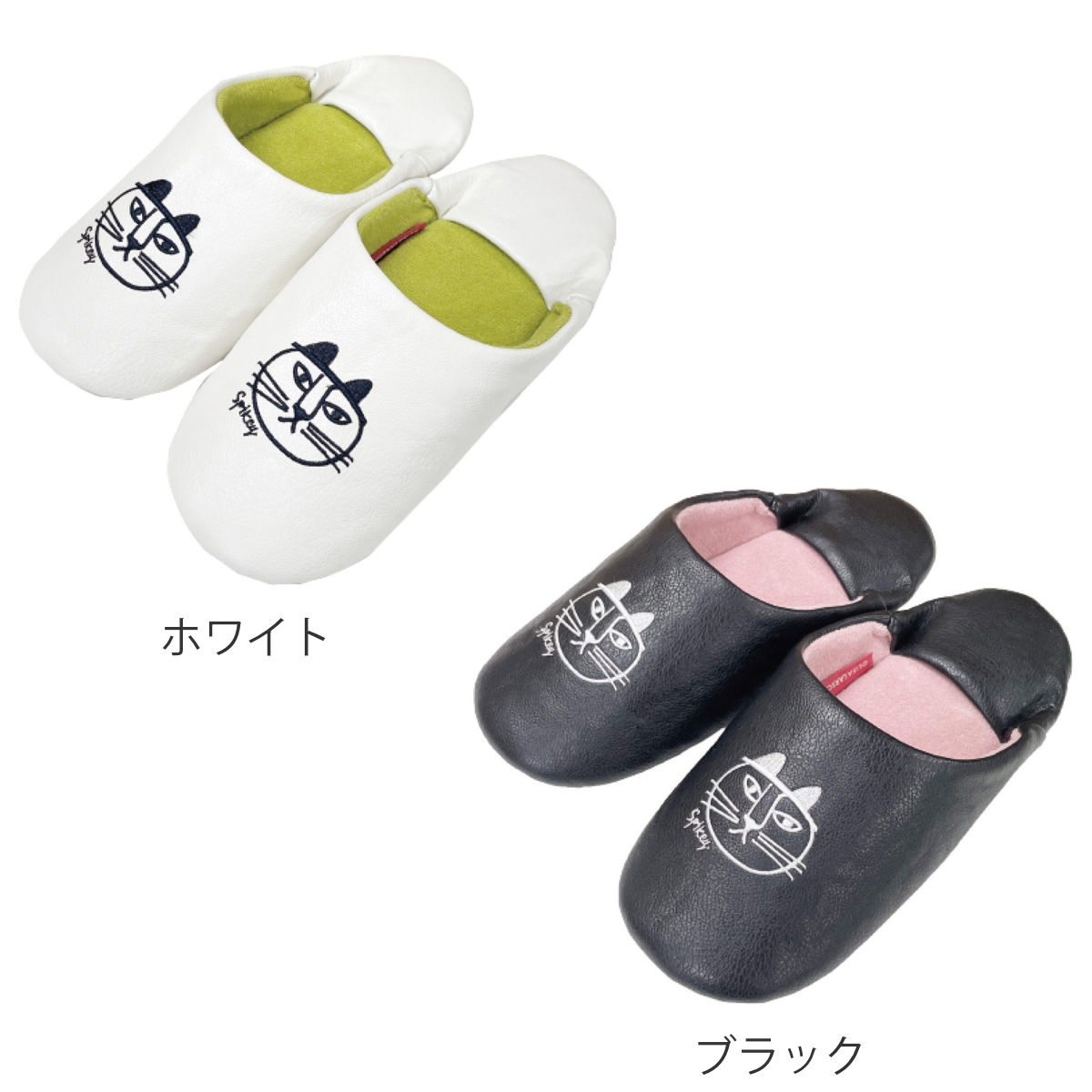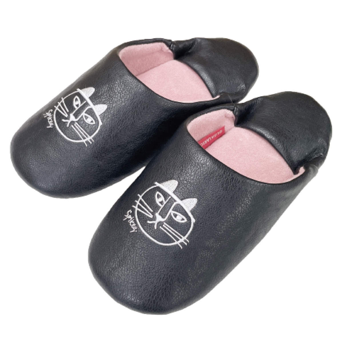 スケッチ風の猫のスパイキーの刺繍が施されたバブーシュタイプのルームシューズ。シンプルだけど存在感のあるデザインです。