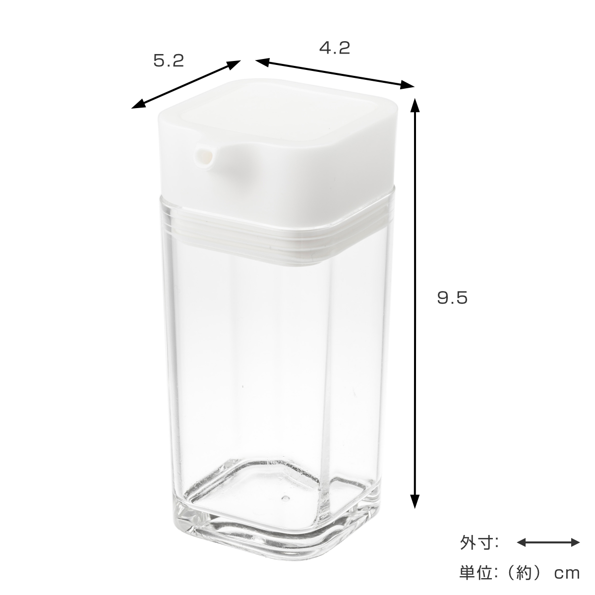 キッチンや卓上で大活躍な醤油差しです。醤油、お酢、オイルなど様々な調味料を入れてご使用いただけます。クリアなボトルなので中身や残量が一目で確認できます。四角い形状なのでコンロ下の引き出しや冷蔵庫に収納しやすく、卓上やコンロ周りに並べてもオシャレです。