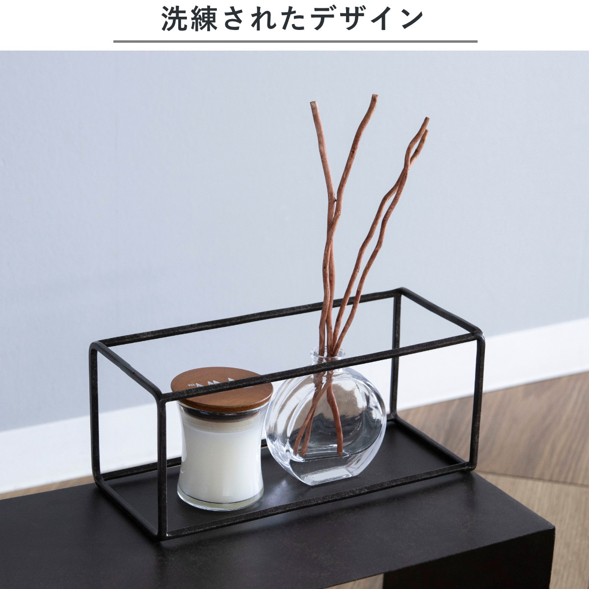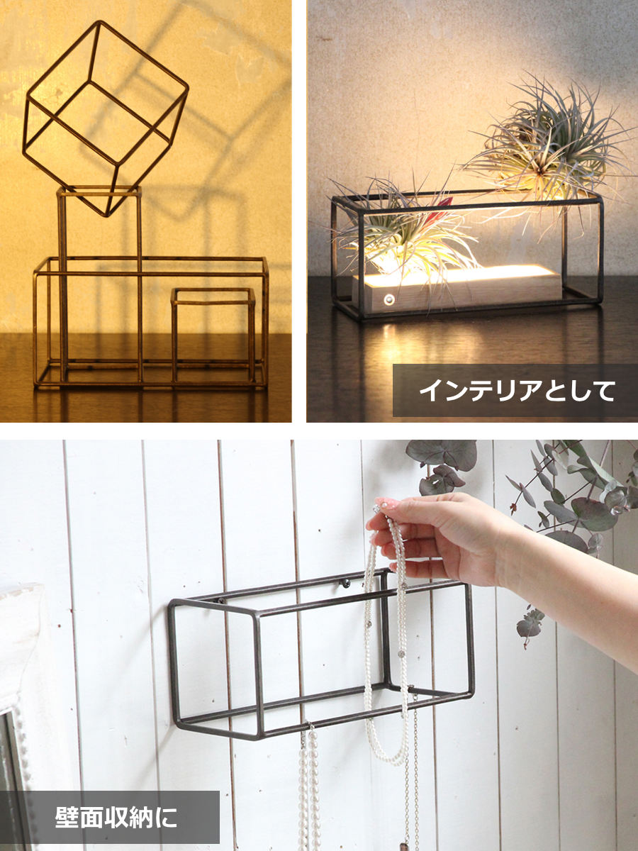 花瓶をひとつ置くだけでも立体感が生まれ、空間にメリハリが生まれます。フレームを利用して、アクセサリーの引っ掛け収納としても活躍します。インテリアに調和しながら、暮らしに機能をプラスする一品です。