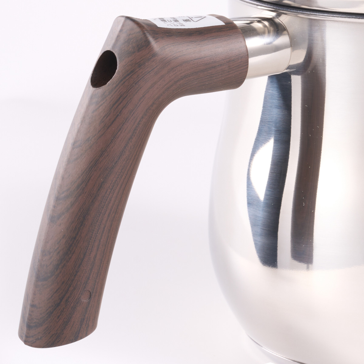 高級感のあるウッド調の持ち手は、下向きについているのでコンパクトで収納も場所を取らず、狭いキッチンでも使えるすぐれものです。