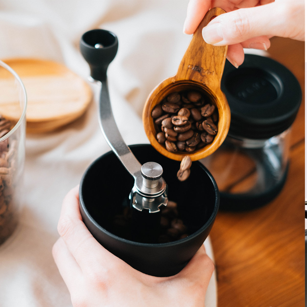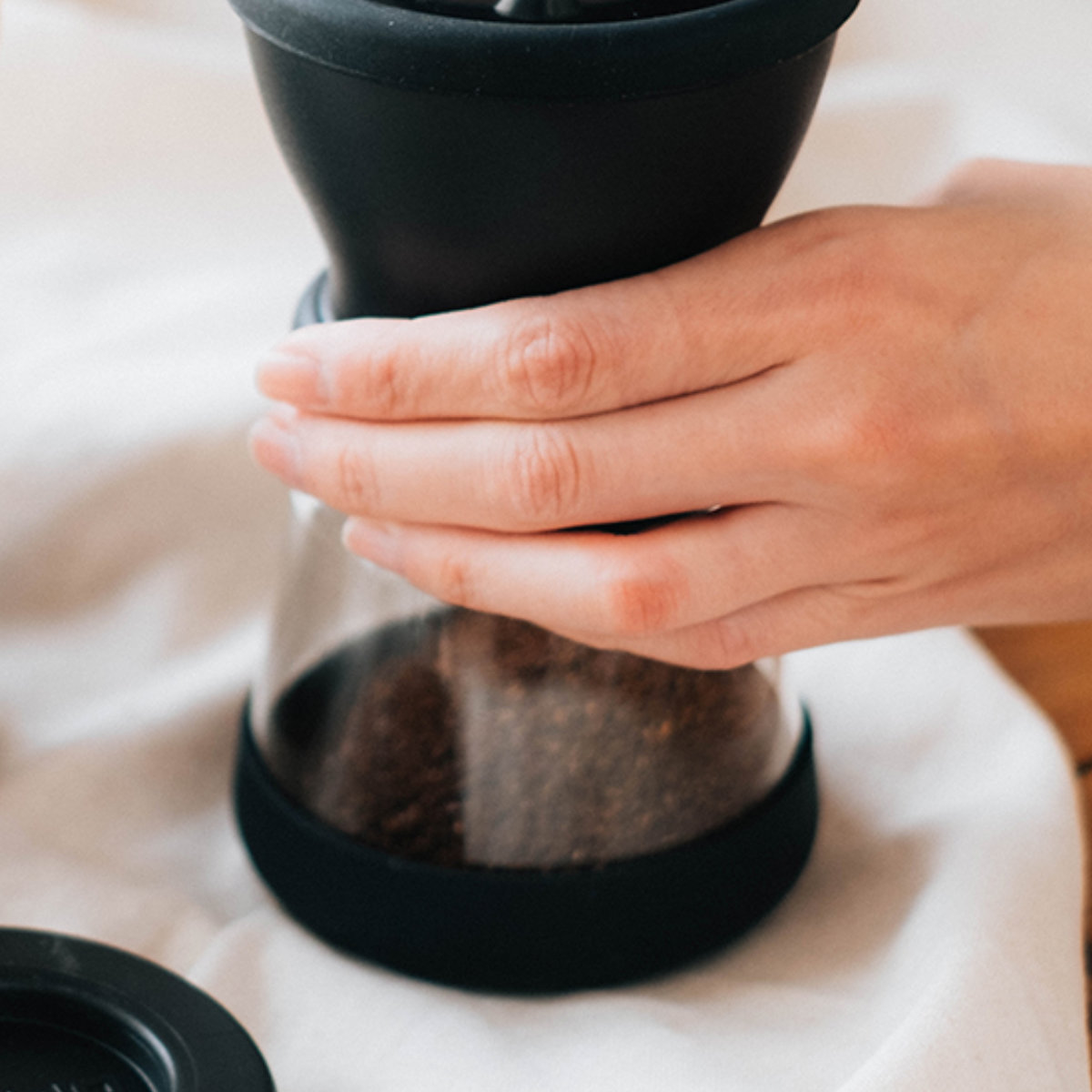 挽きたての香りを楽しむコーヒーミルです。滑り止めカバー付きなので安定してコーヒー豆を挽くことができます。コンパクトサイズなのでキッチンの場所をとりません。