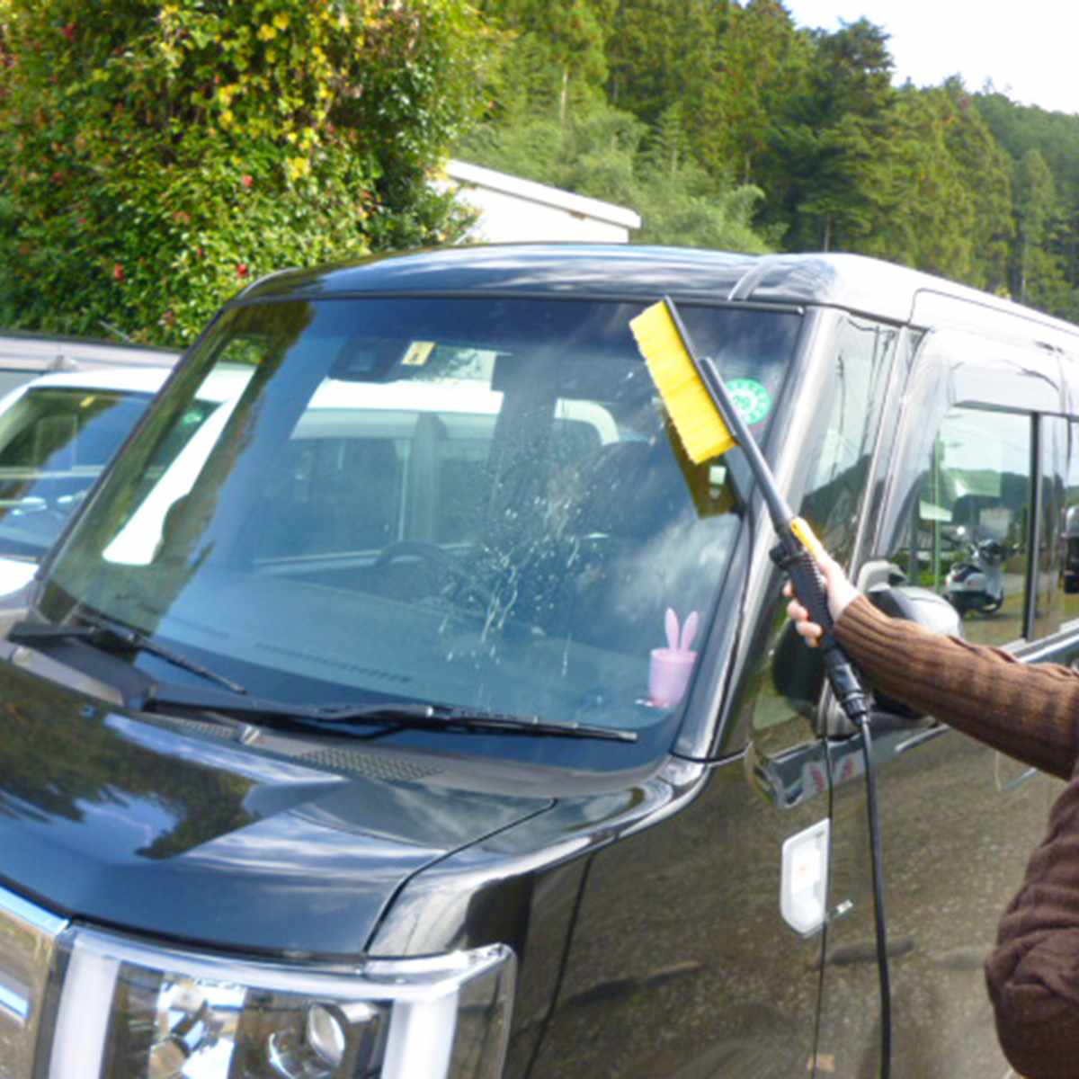 ワンタッチで取り付け・取り外し可能なブラシとシャワーが付いています。ブラシから直接水が出るので、ゴシゴシ洗いながら汚れを落とせ、広い面や高い場所もラクラクお掃除。洗車や網戸・窓ガラスのお掃除に活躍します。