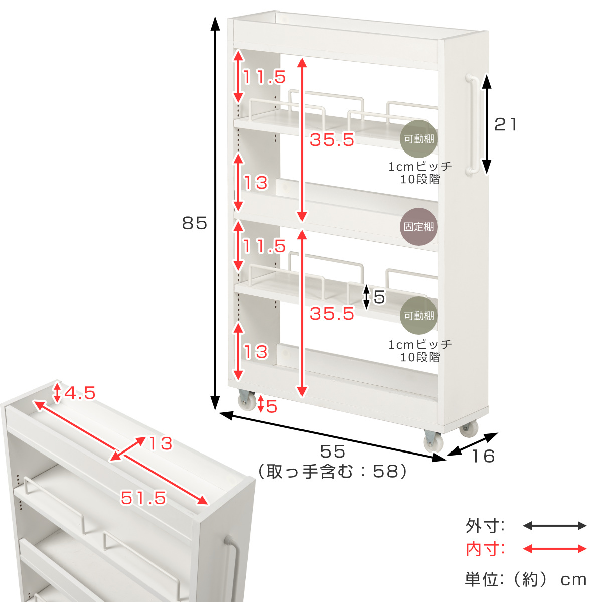 隙間収納ワゴン 幅16cm ロータイプ キャスター付