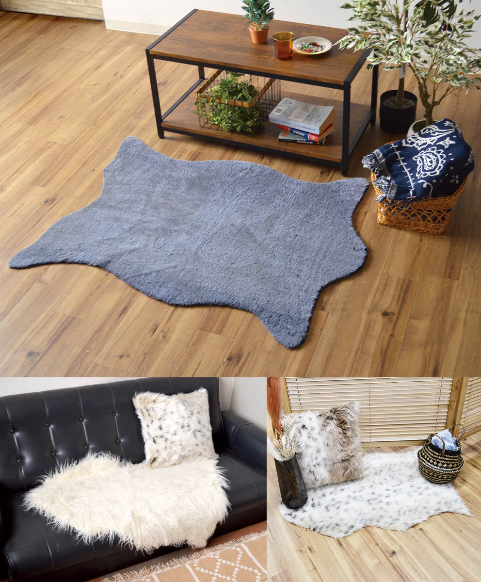 まるで本物の動物を撫でているような、やわらかな毛並みが特徴のフェイクファーは、ずっと触っていたくなる癒しのマットです。アニマルライクなデザインは見た目にも癒されるアイテムです。