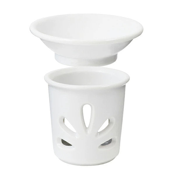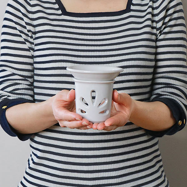 オイルウォーマーは、キャンドルの熱でエッセンシャルオイルを温めて香りを広げる芳香器です。アロマライトとは違い、キャンドルのゆらめく炎がやさしく心を癒してくれます。灯り窓はお花のような形で、もれる光もほんのりかわいい雰囲気です。