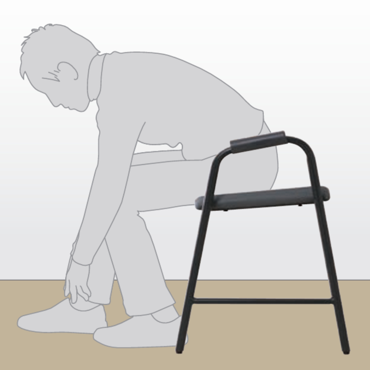 スツールにアームが付くことで、着座と立ち上がりの負担を軽減します。