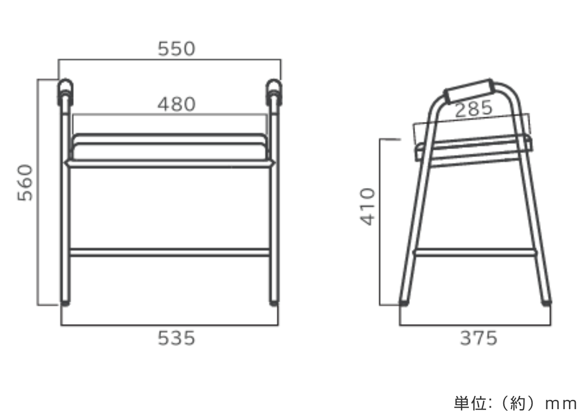 | 材質 | 座:合成皮革 フレーム:スチール、粉体塗装 取っ手:天然木(パイン) |
