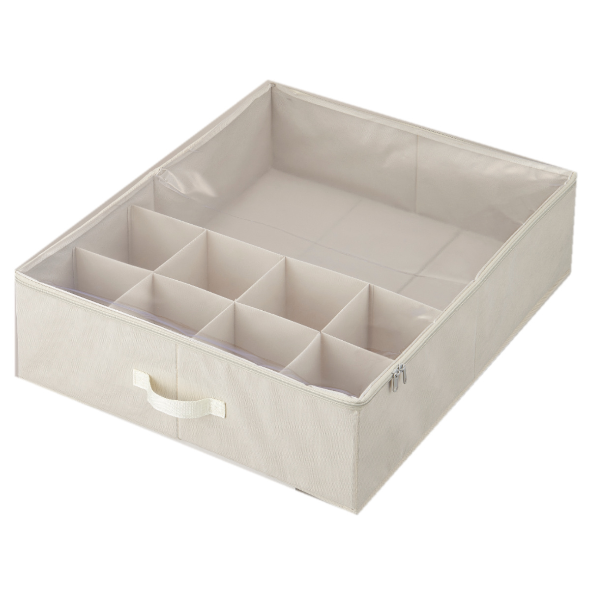 収納物に合わせて仕切り位置を自由に変えられる収納ケースです。高さ約18cmなので、ベッド下やソファ下などのデッドスペースを有効活用できます。