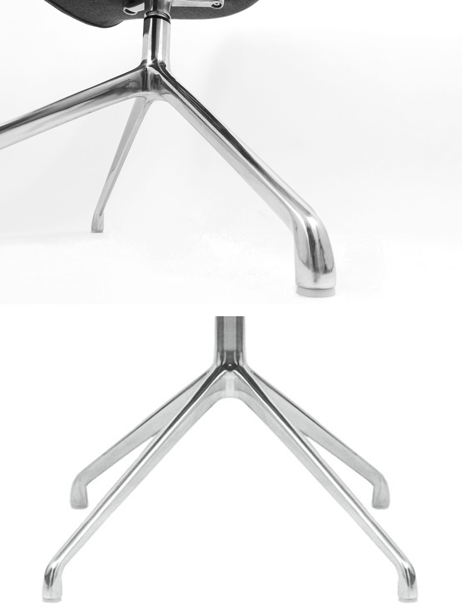 スタイリッシュなアルミ製ハの字脚は、見た目の軽やかさを保ちながら、しっかりと体重を支える安定性も兼ね備えています。