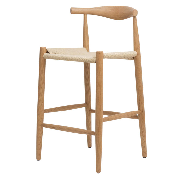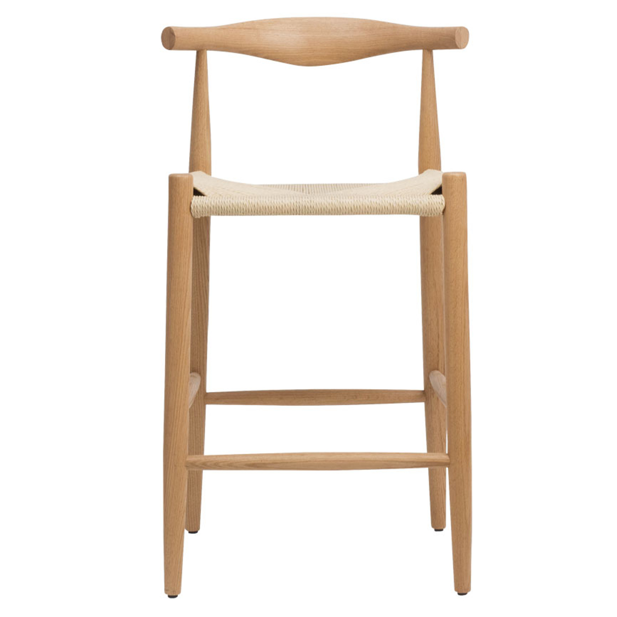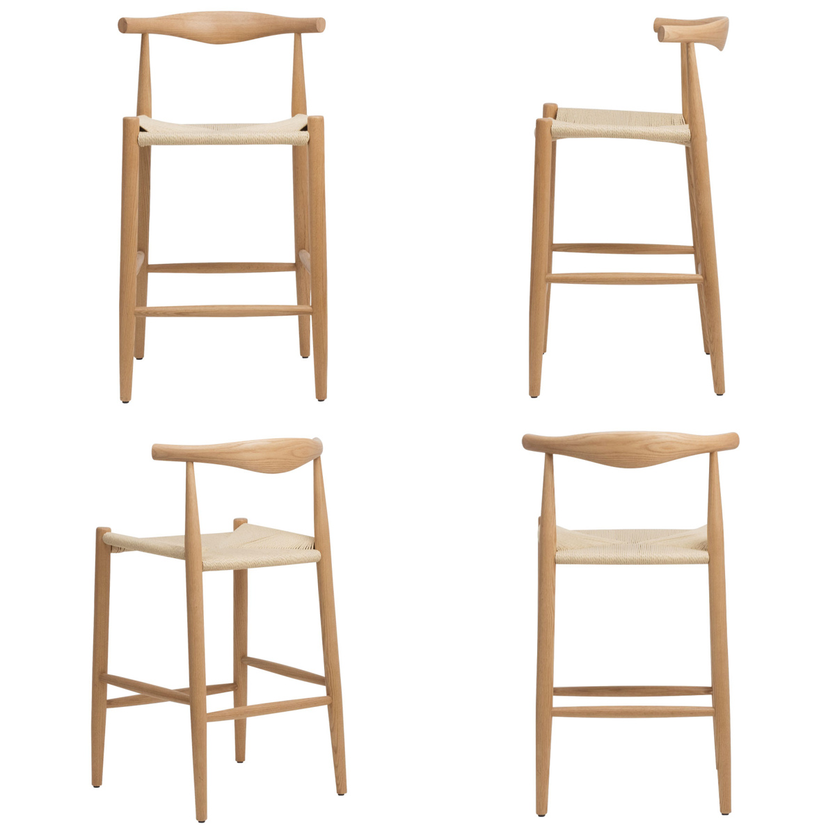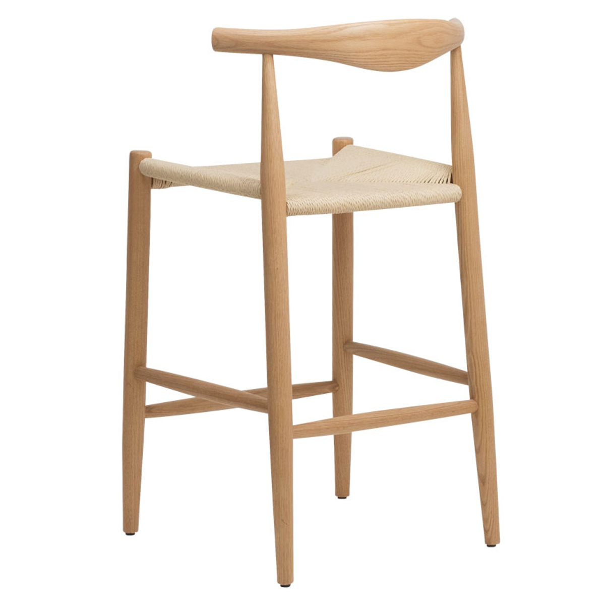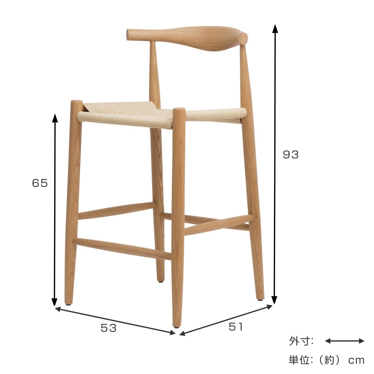 無垢材のフレームにペーパーコードで編まれた座面の組み合わせのカウンターチェアです。シンプルでありながらも、背もたれの絶妙な曲線と座り心地に配慮した設計です。