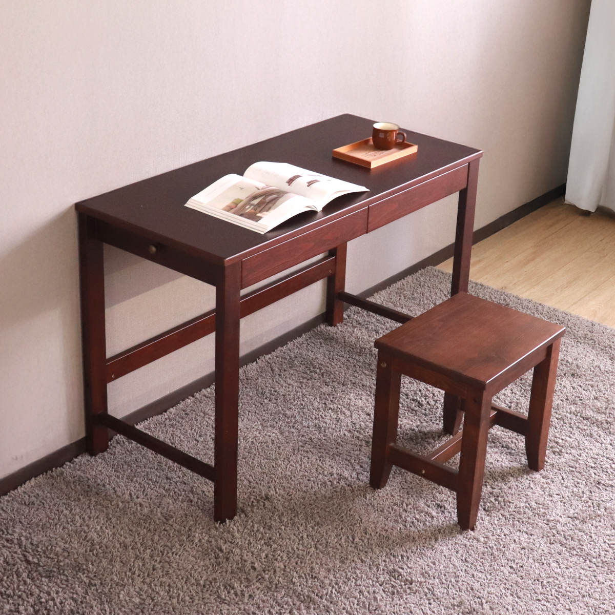 幅110cmのシンプルなデスクは、使いやすさと素材感を両立したデザインです。天板や脚にはパイン無垢材を使用しており、木の温かみや自然な風合いを楽しめます。リビングや書斎に置くだけで、落ち着いたナチュラルな雰囲気を演出できます。