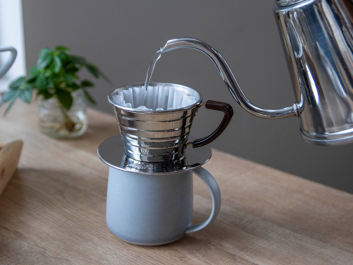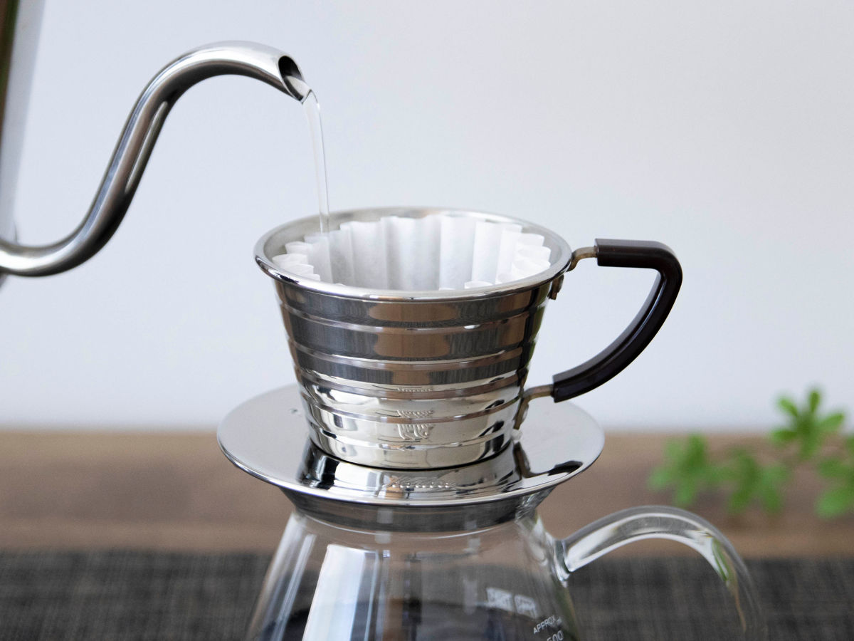 清潔感のあるウェーブ模様が楽しいステンレス製のドリッパーです。味ムラが少なくお湯を注いだ時の景色や香りも楽しめて、本格的なドリップコーヒーをご家庭で手軽に楽しめます。