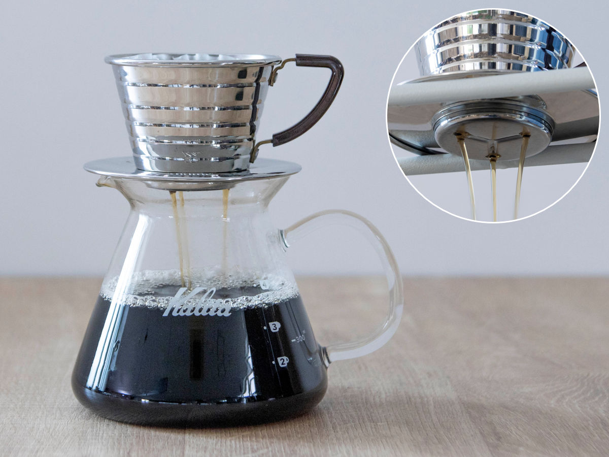 カリタ独自の三つ穴構造のドリッパーは、長時間フィルターとウェーブゾーンにコーヒー液がとどまらず、雑味成分の抽出が少なく美味しさだけをドリップできます。