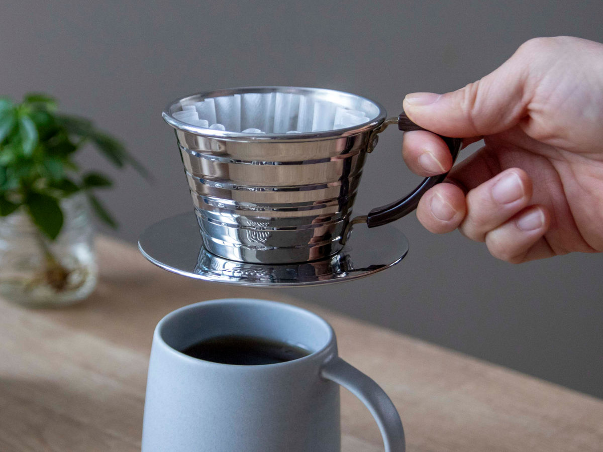 持ちやすい形状の持ち手付きです。抽出後は、スムーズに取り外せてドリッパーに直接触れずに済むため、火傷の心配もありません。