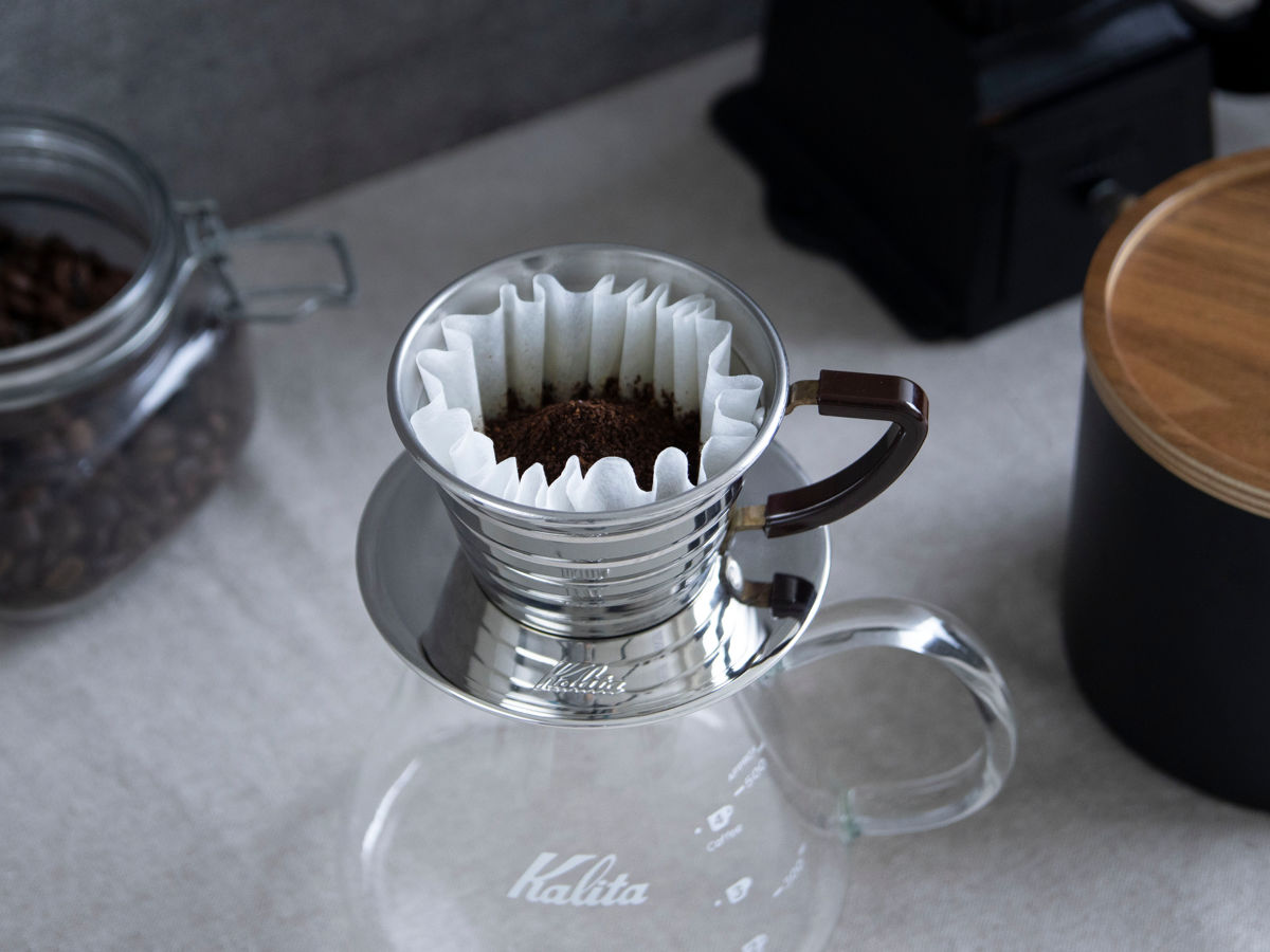 専用のウェーブフィルター(別売り)を使用すると、ドリッパーとの接触面が少なく、長時間フィルター内のかたよったところにお湯がたまらず、速やかにドリップされます。かたよってお湯を注いでも、底が平らなので粉に均一になじみやすいのが特徴です。「ウェーブ」シリーズは初心者からプロのバリスタまで…誰もが手軽に、ベストな味わいをお楽しみいただけるKalitaオリジナルのプロダクトシリーズです。