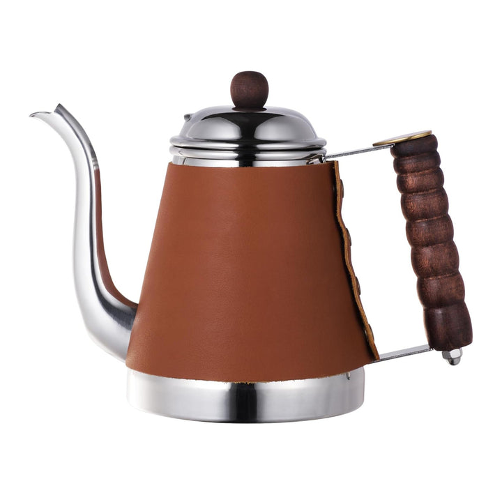 本革のベルトをあしらい、機能性とデザイン性と兼ね備えたドリップポットです。別途沸かしたお湯を本製品に移しかえて、ハンドドリップをお楽しみいただけます。カフェのような雰囲気を自宅で楽しみたい方や、コーヒーギフトとしてもおすすめの一品です。