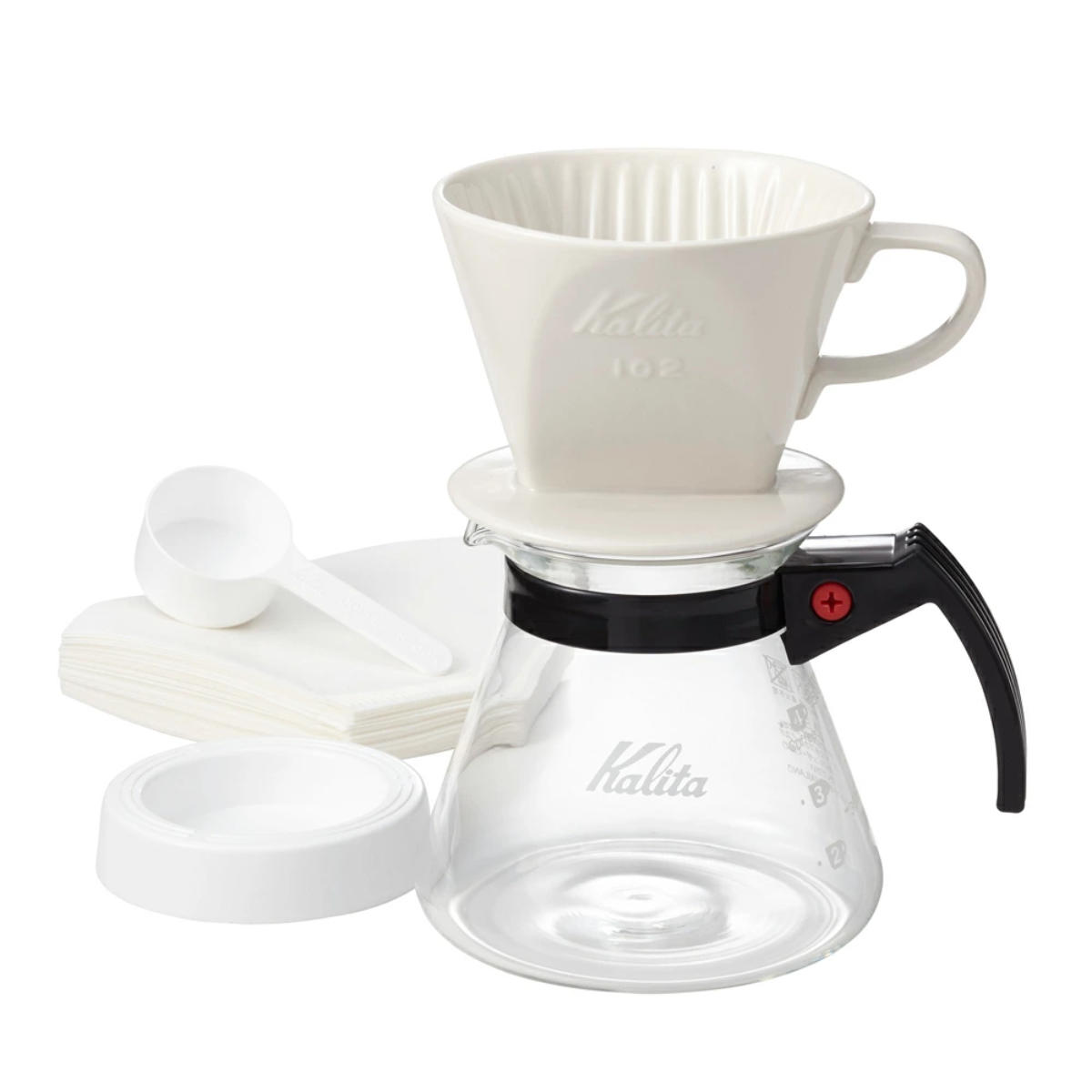 2~4人分の抽出にぴったりで、ドリッパー・サーバー・濾紙(102サイズ)、メジャーカップ、ロト受けが含まれています。