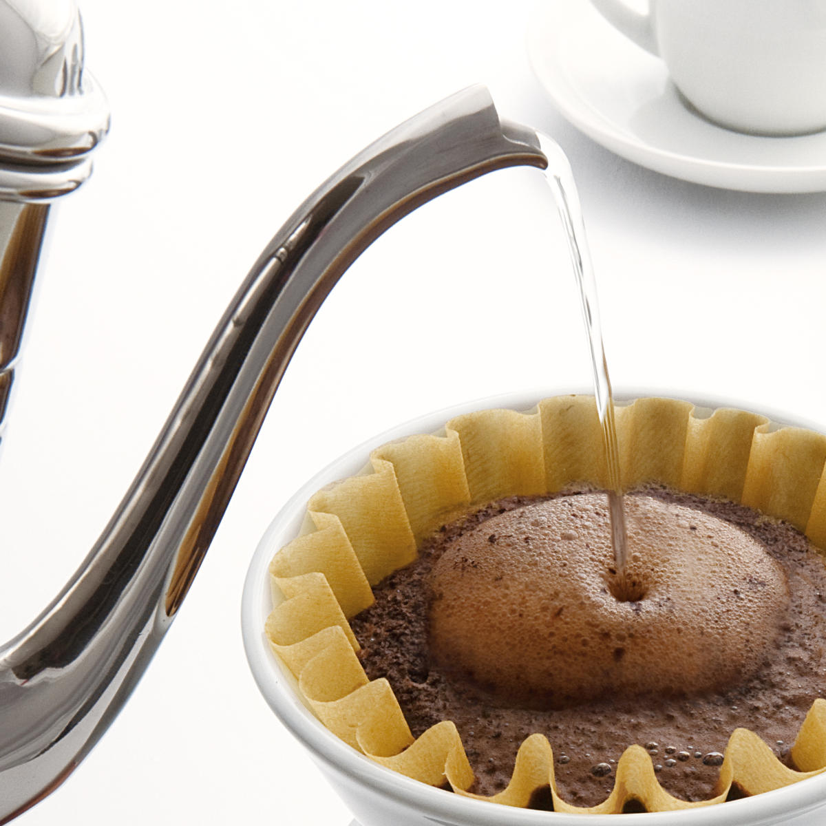 細く繊細なノズルは、お湯の量やスピードを自在にコントロール可能。狙った場所に正確に注げるため、ハンドドリップの味わいが格段に向上します。