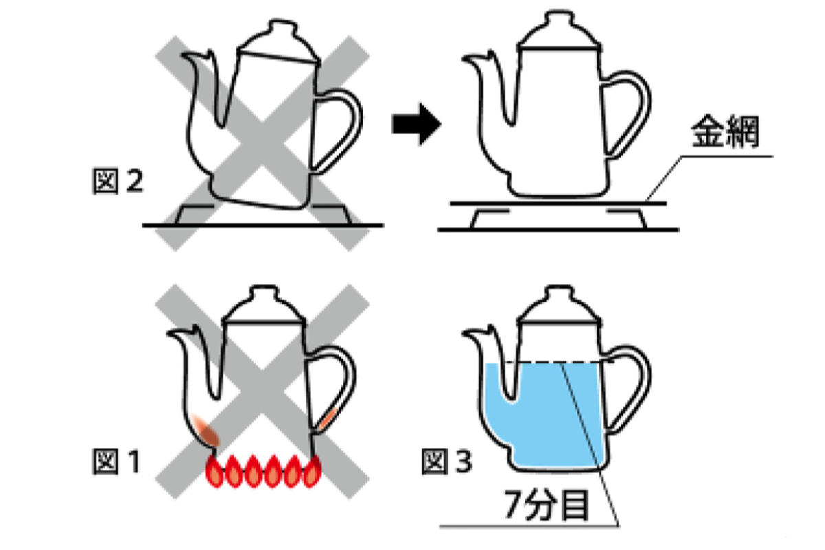 ※ガス台でご使用の際、バランスが悪い場合は金網の上に乗せてご使用ください