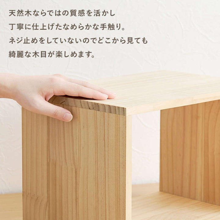 天然木ならではの質感を活かした、なめらかな手触りです。ネジ留めをせずに仕上げているので、どこから見ても美しい木目を堪能できます。
