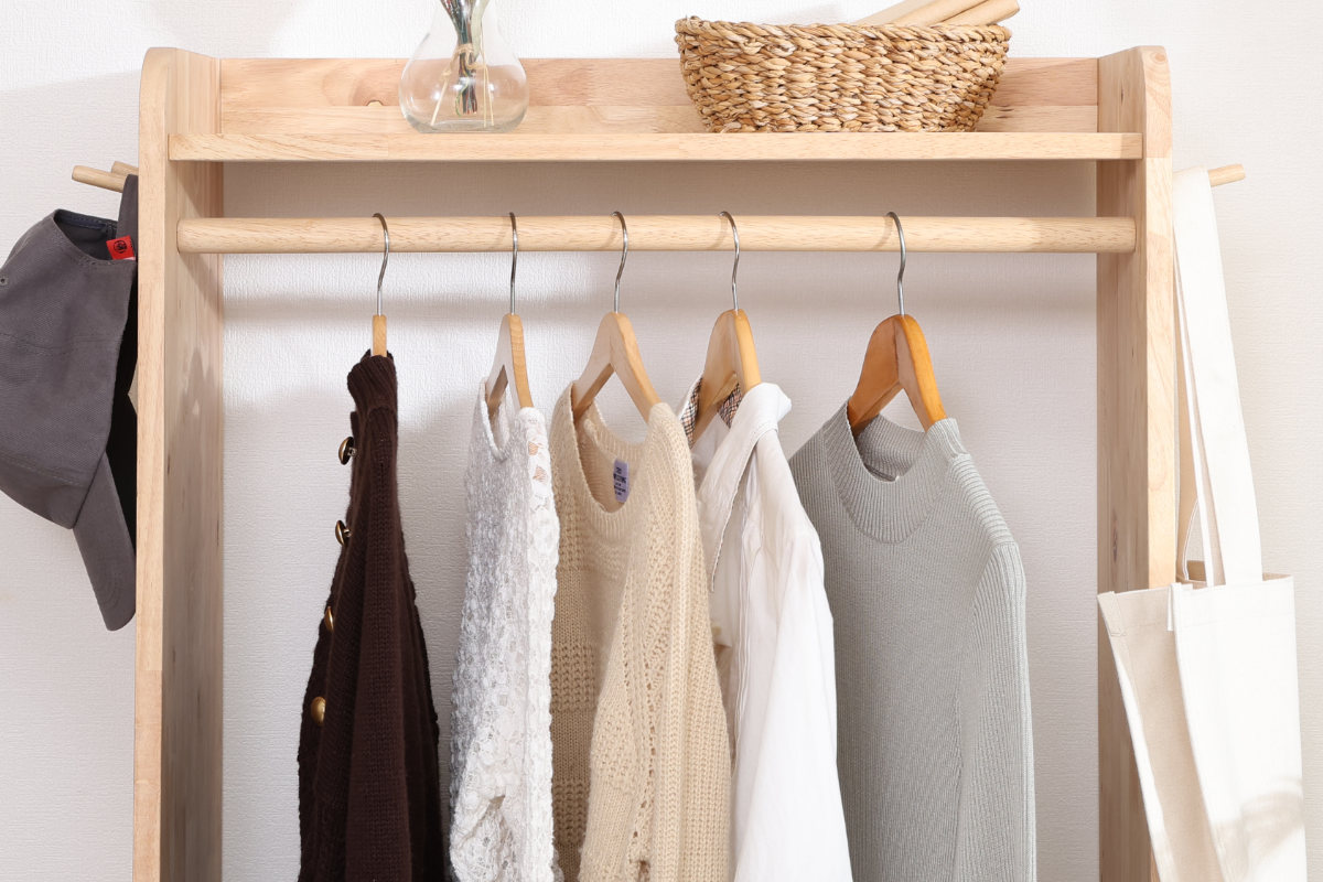 木の温もり溢れるデザインのハンガーラック 幅70cm