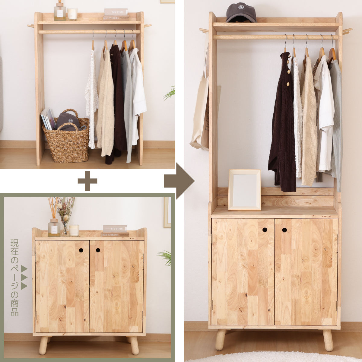 別売りのトップラックと組み合わせれば、さらに収納を増やせます。トップラックは、用途やお部屋の雰囲気に合わせて、オープンラックかハンガーラックかをお選びいただけます。