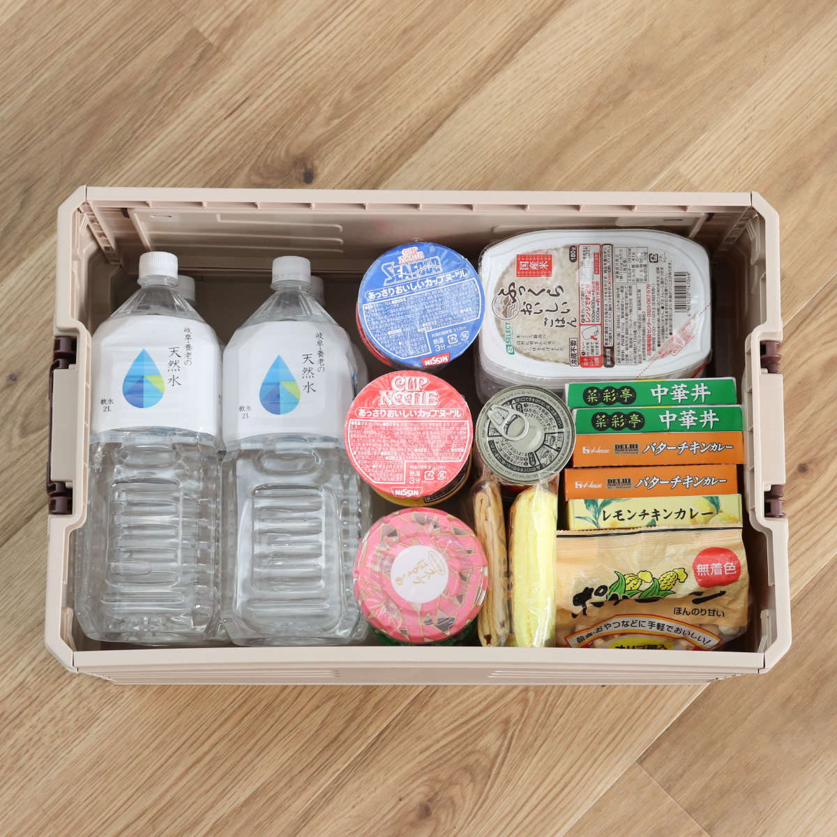約55Lのたっぷり収納です。2Lのペットボトルを寝かせて収納できます。パントリーでは食材や日用品のストックとして、災害時では備蓄品入れとして活躍します。