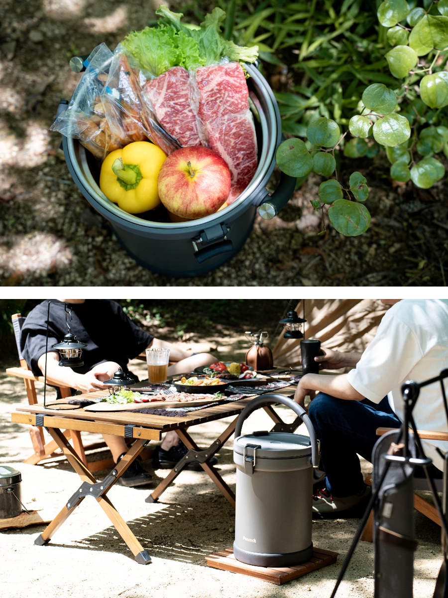 キャンプやバーベキューなどのさまざまなアウトドアシーンで重宝します。保冷はもちろん、保温にも対応しており、6時間で83度以上をキープします。夏の冷たい飲み物から冬の温かいスープまで、季節を問わず頼れるアイテムです。