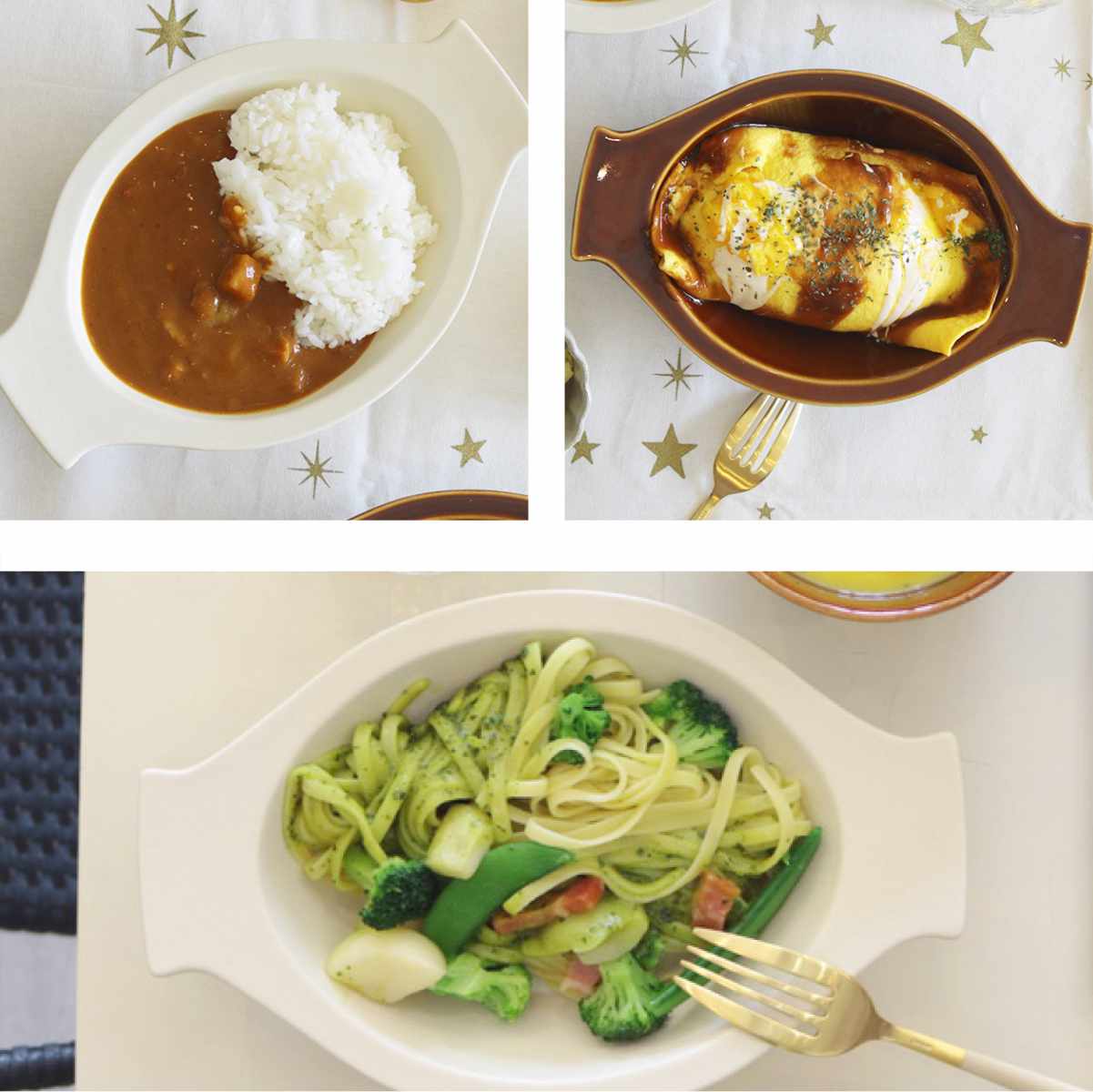 メイン料理に使うのに便利なオーバル皿です。オーバル皿が1個あるだけでテーブルが華やぎ、料理が成立します。
