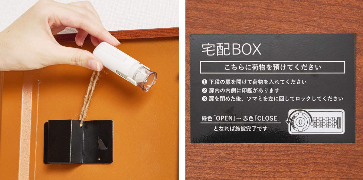 メッセージプレート付き マグネットシート仕様なので、宅配ボックスの目立ちやすい場所に貼り付けて使用してください。 |
