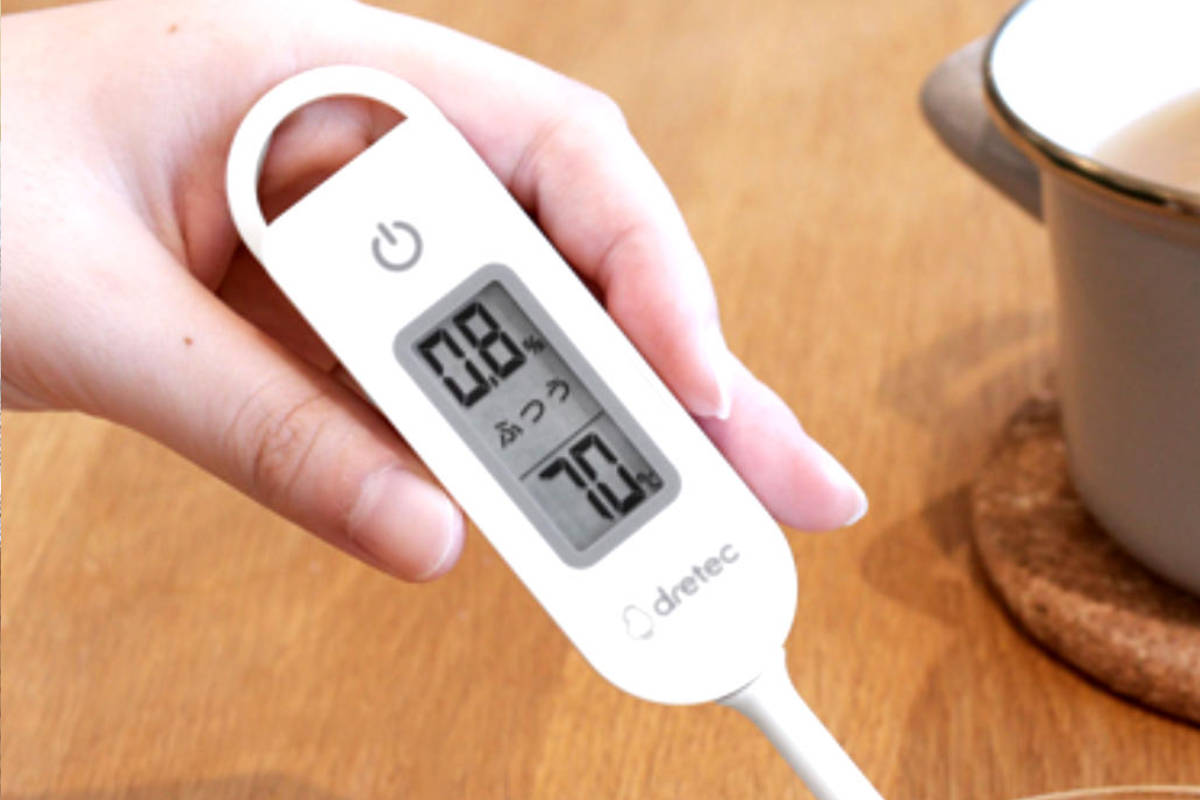 塩分と同時に温度を測定することができます。91~115度の場合は「あつい」と表示してくれるので、離乳食や介護が必要なご家族の食事作りをサポートします。