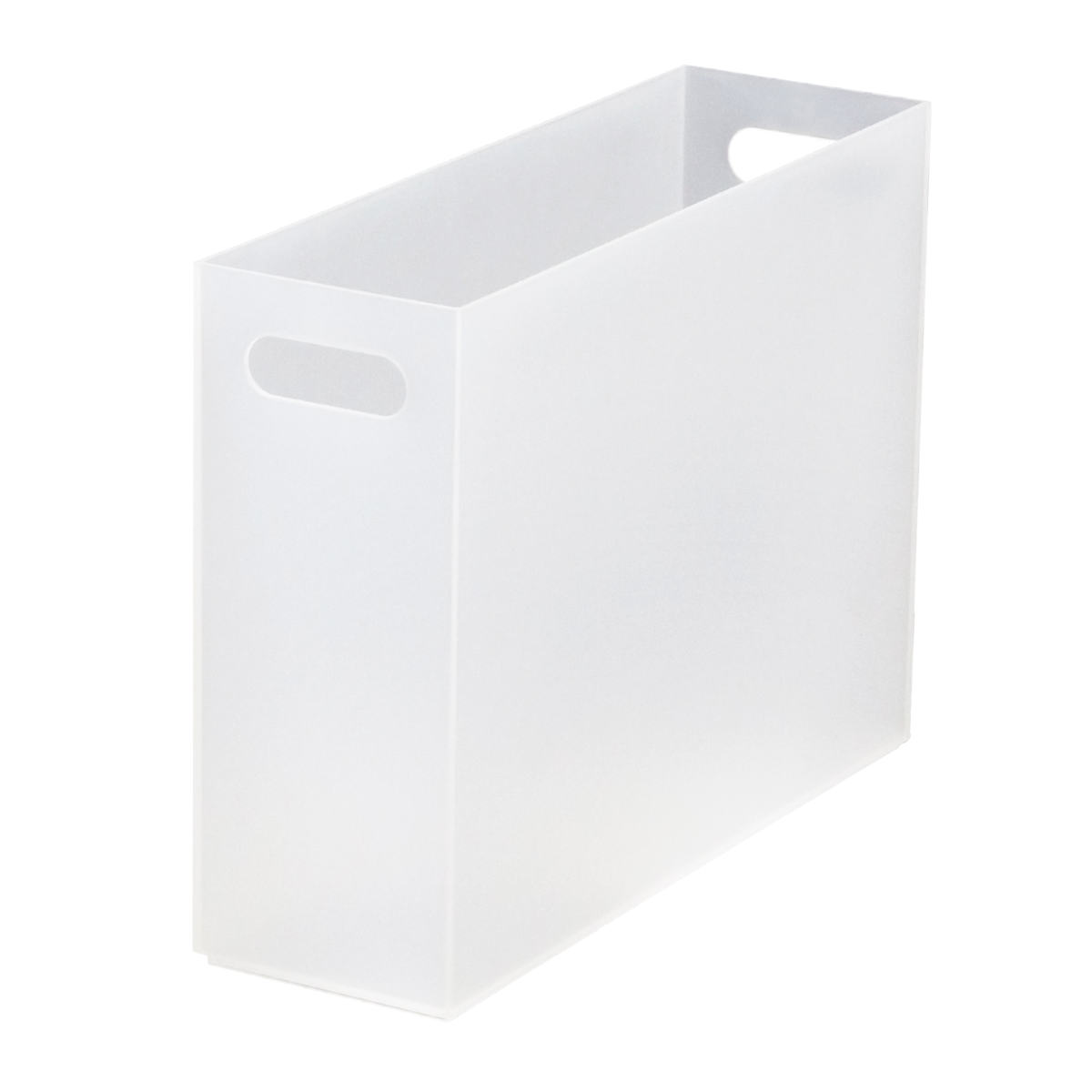 A4サイズの書類やファイルをスマートに収納できる、スリムタイプのストレーショナリーボックスです。幅わずか10cmのスリム設計で、限られたスペースでもしっかり収納できるから、デスク周りや棚のすき間にもぴったりです。