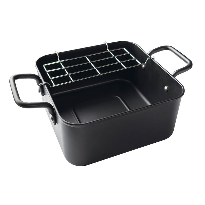 丸型よりも広く使える四角形の天ぷら鍋です。16cmのコンパクトサイズで、お弁当作りなどのちょこっと使いにも便利にお使いいただけます。