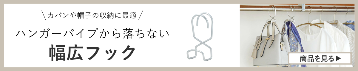 カバンの収納に最適なハンガーパイプから落ちない『幅広フック』はこちらから