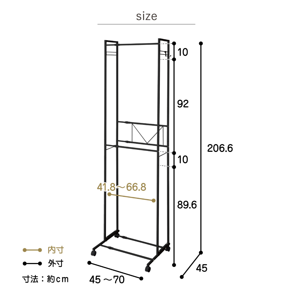 | サイズ | 約 幅45~70×奥行45×高さ206.6(cm) |