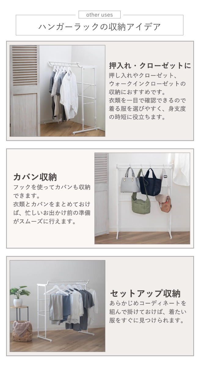 カバンの収納に最適なハンガーパイプから落ちない『幅広フック』はこちらから