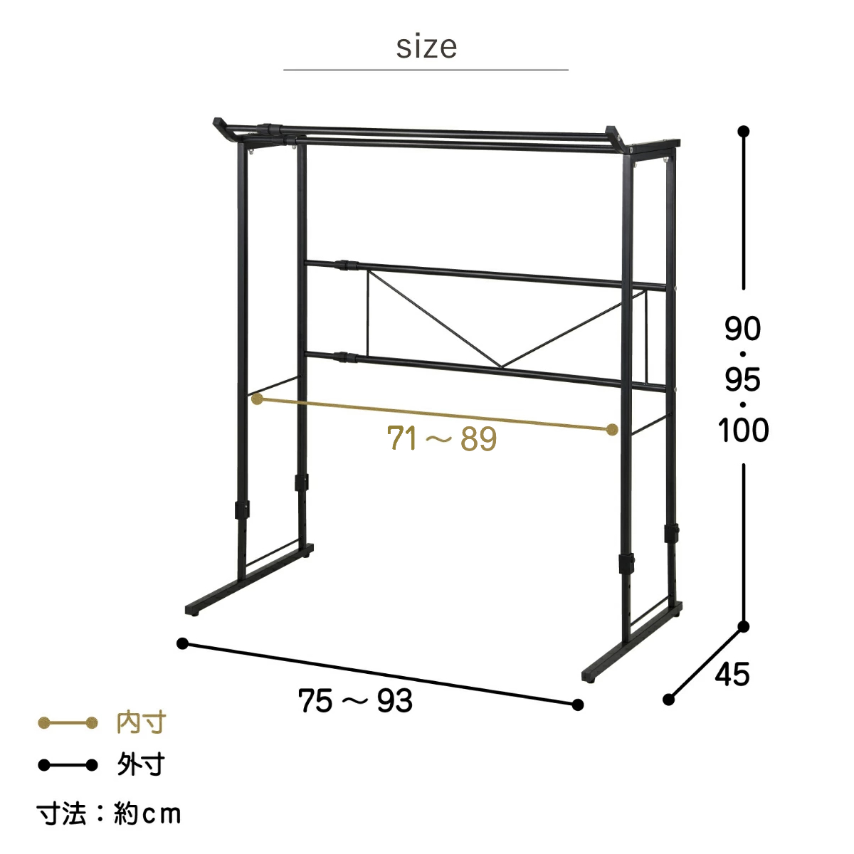 | サイズ | 約 幅75~93×奥行45×高さ90・95・100(cm) |