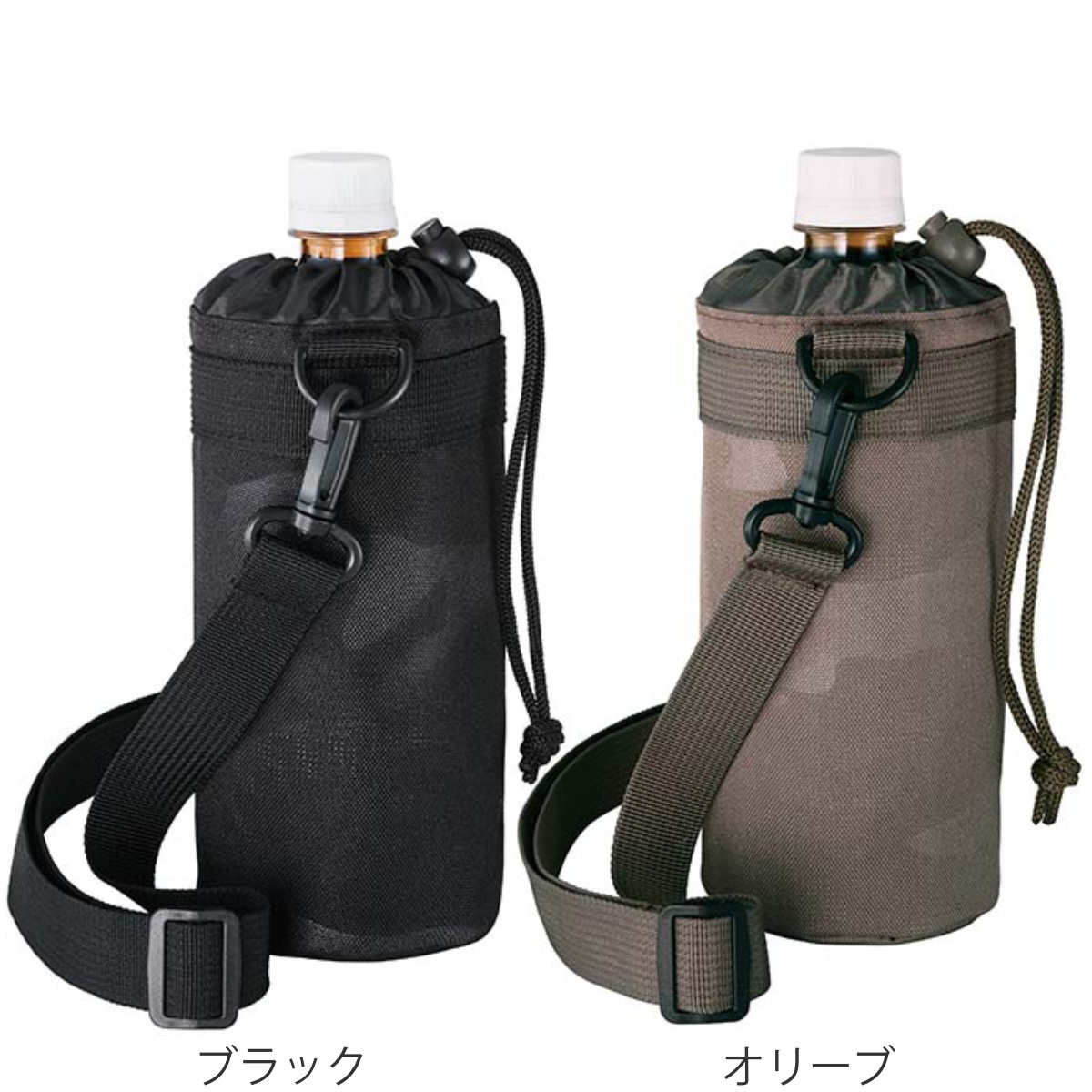 持ち歩きに便利なストラップが付いているので、アウトドアやスポーツシーンにぴったりです。また、カバーの上部は巾着仕様で、しっかり閉めればボトルが飛び出しにくく安心です。