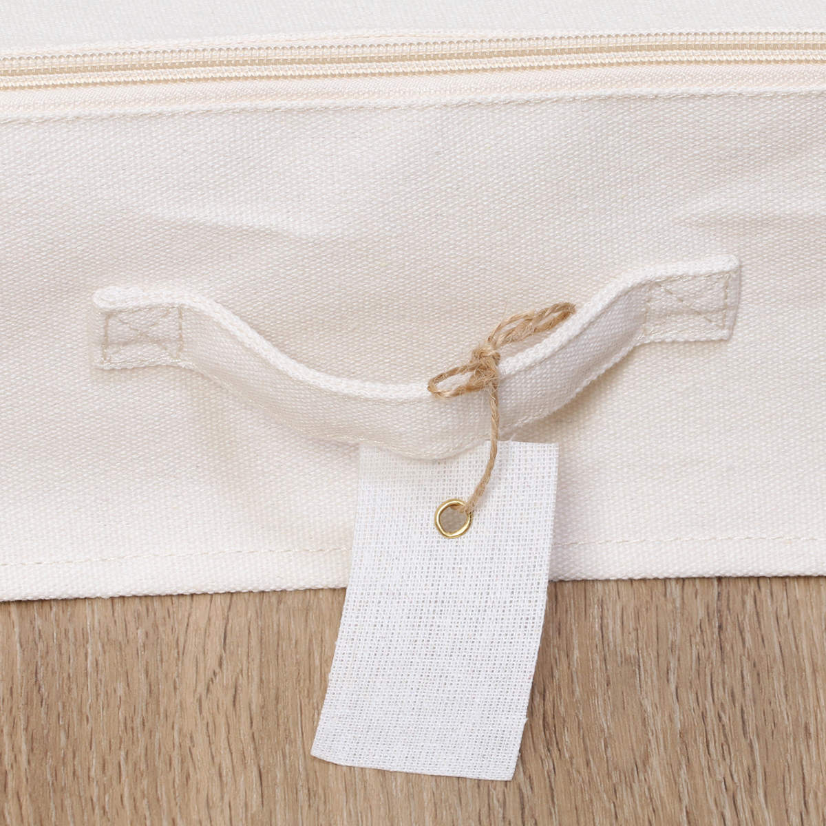 ボックスと同じ生地のラベルを付属しています。PEコーティング面に油性ペンで書き込めるので、収納内容がひと目で分かり片付けがよりスムーズになります。