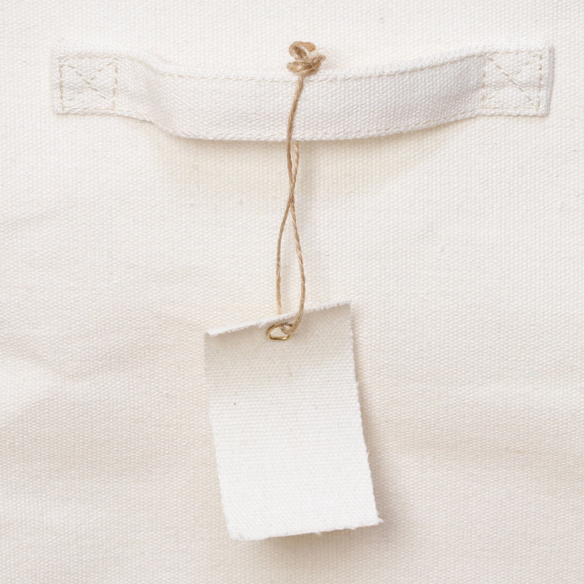 | 材質 | 綿60%、ポリエステル40%(PEコーティング片面) タグ:綿60%、ポリエステル40%(PEコーティング内側) タグ紐:麻 ハトメ:鉄 |