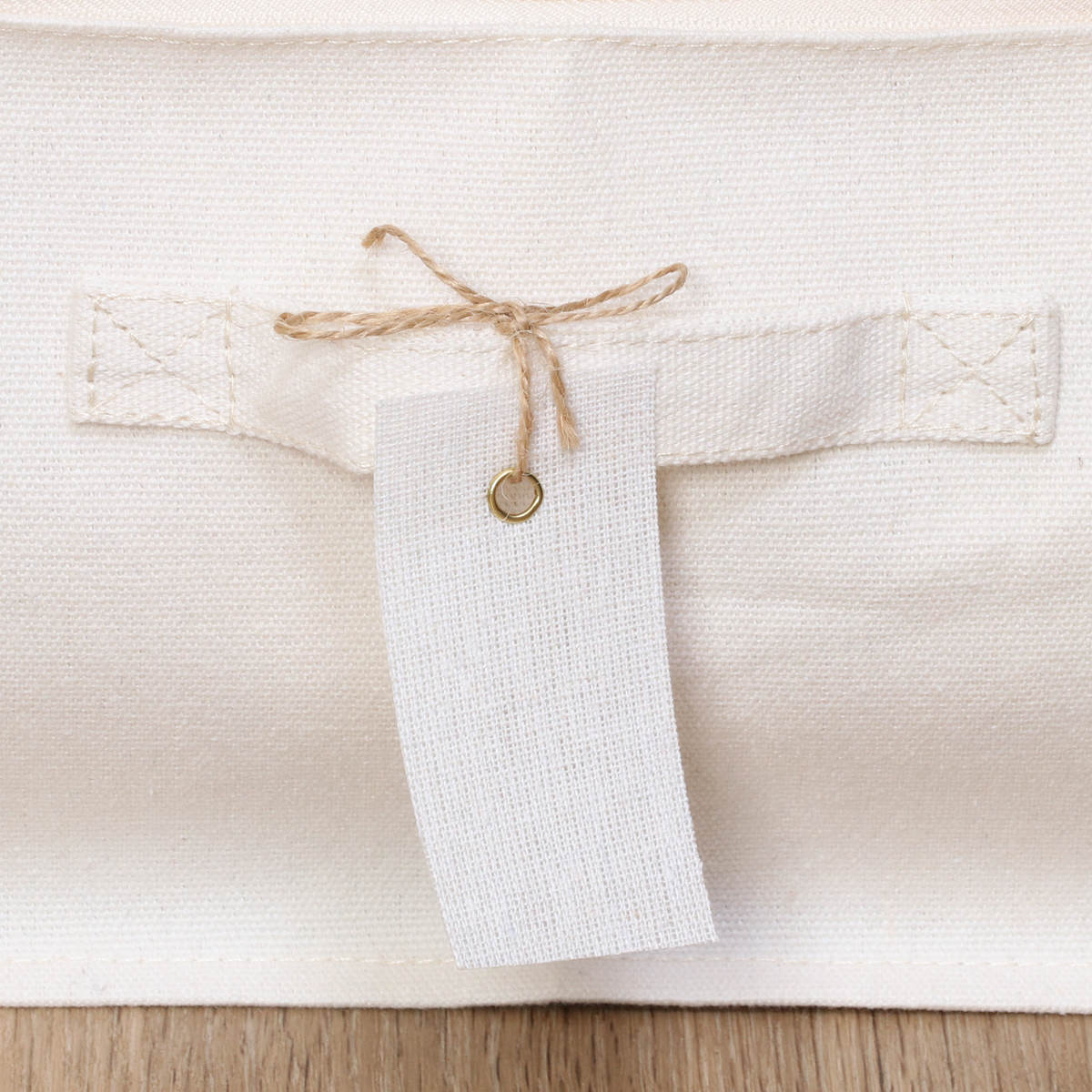 ボックスと同じ生地のラベルを付属しています。PEコーティング面に油性ペンで書き込めるので、収納内容がひと目で分かり片付けがよりスムーズになります。