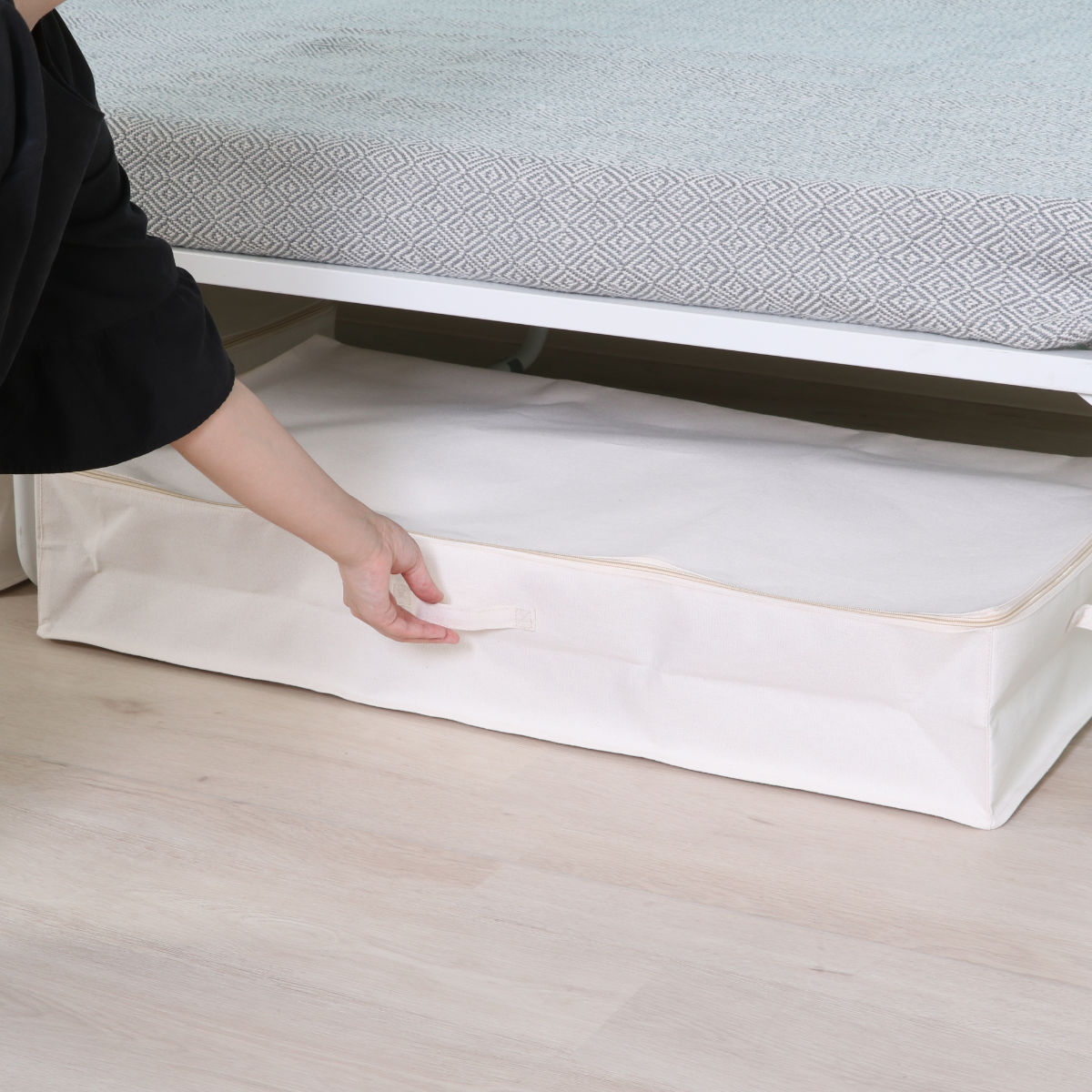 薄型なのでベッド下、ソファ下など狭いスペースに収まります。ちょっとした空きスペースを有効活用できます。